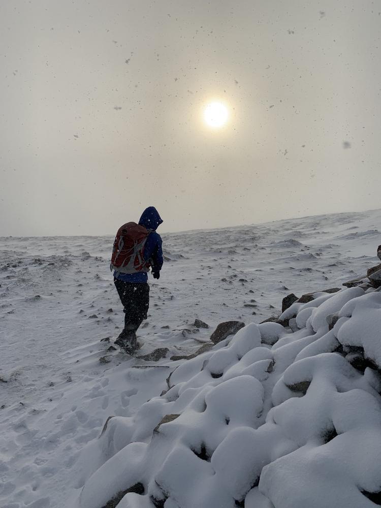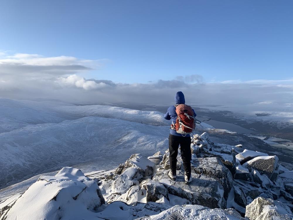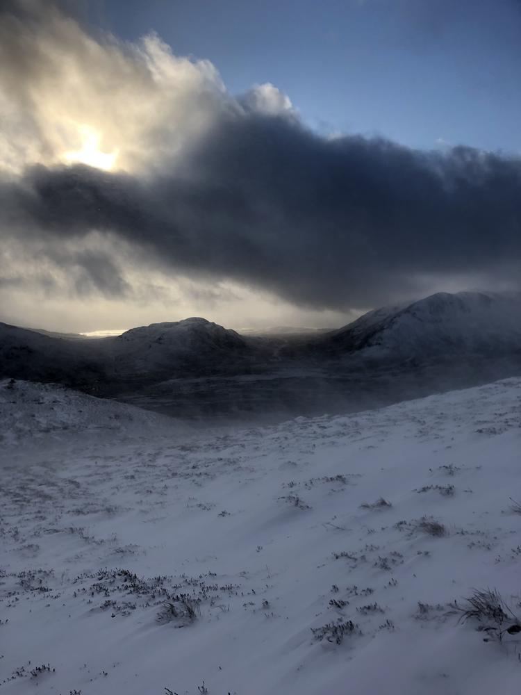 Sunday saw drier weather but some sleety showers depending on where you were. Martha, Helen and Tim headed for Ben Macdui where it was windy but they had some sun and great views and Martha ticked her 141st munro! Chris W headed for Geal Charn. Alan and Anne waited until a snow shower had gone off before leaving Lagganlia and climbed a Graham behind Newtonmore (Creag Liath) – again very windy but the clag cleared whilst they were still on the top and they were able to enjoy the sunshine too. Rob headed for a Dalwhinnie munro – Carn na Caim. I had my bike and did Meallach Mhor – a bit slippy and snowy on way in but cleared on the hill and got great views and even blue skies. After some deliberating Tony set off for Creag Mhor. Mike and Fiona did Schiehallion and like many of us suffered from fierce cold wind but good views made up for it. Alison and Kenny did Sgor Gaoith.