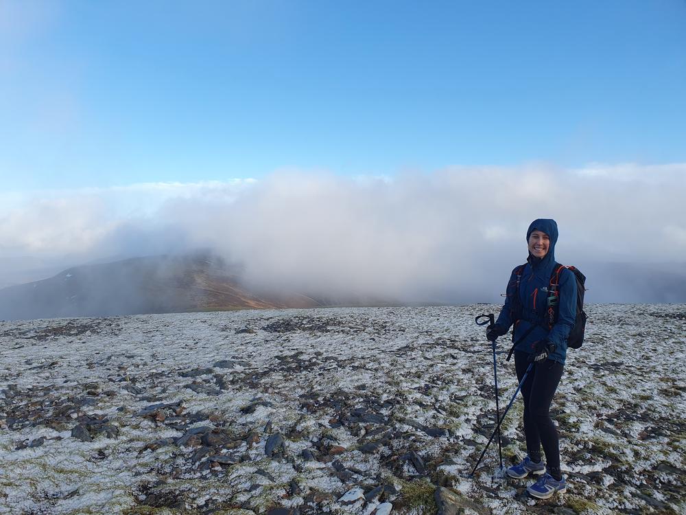 Nicola and Martha enjoyed a run over the western four Drumochter Munros where a dusting of snow at the tops didn’t provide quite enough camouflage for all the ptarmigans and the mountain hare they spotted. When the views were there, they were “stunning”, but the payback was the uphill jog along the A9 against a fierce headwind.