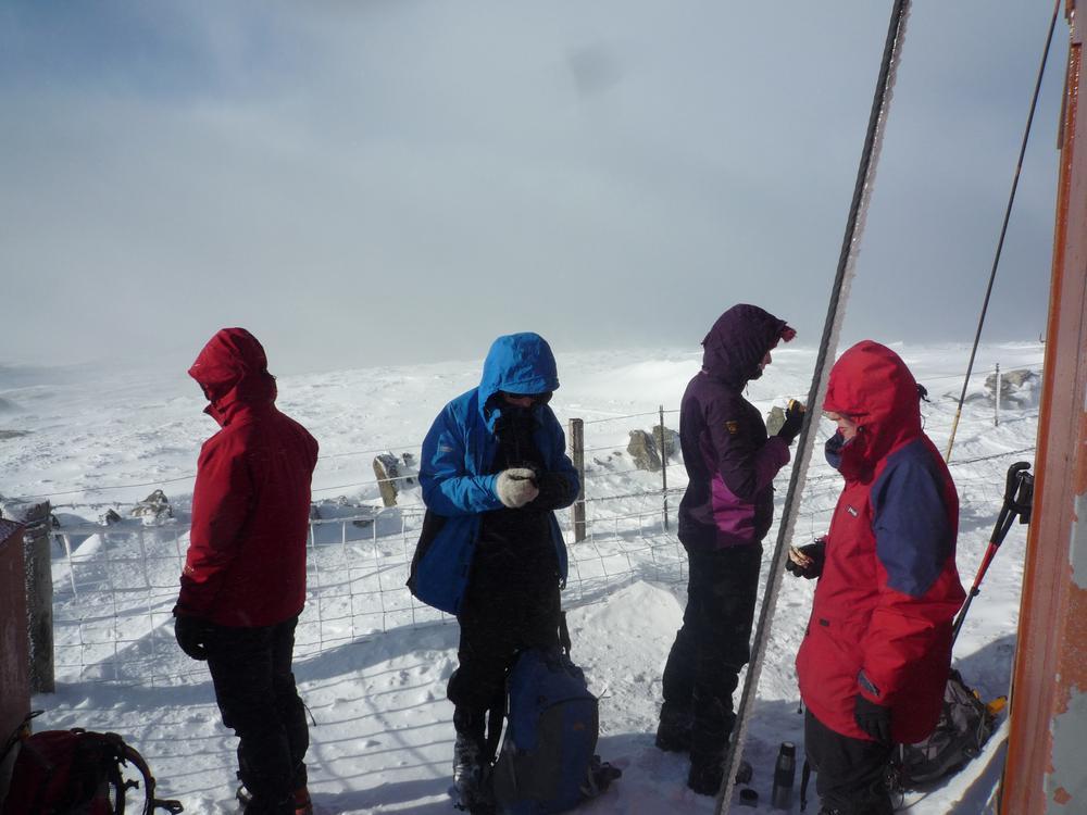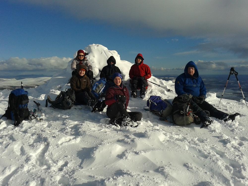 Alan H, Alison, Kate and others went up Morven, no news on the hidden visitor book at the summit though. (Everyone has too many layers on to identify from the photos!)