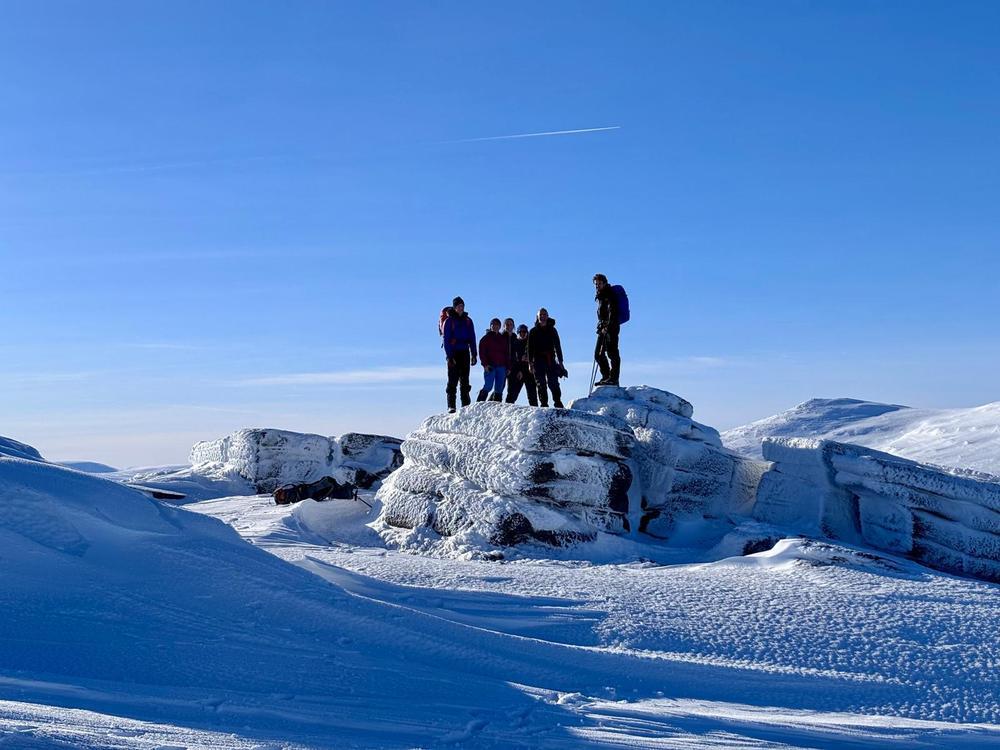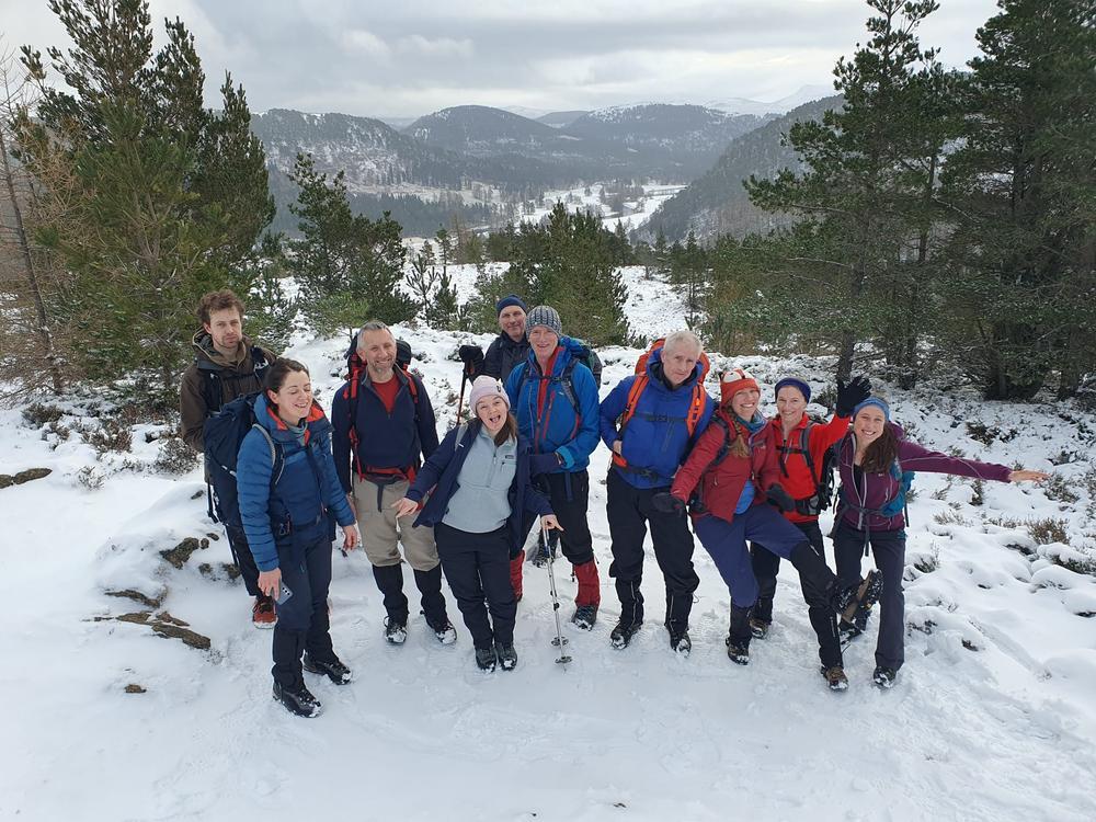By Sunday morning we were snowed into Braemar so a large group opted for a gentle walk over Creag Choinnich. Having bumped into some locals we were amused to find they thought Iain was our guide (I’m not sure what about the generally over-kitted state of the rest of us made them think we needed guiding!), and they were reassured we wouldn’t get lost or stuck on the way back to Braemar.