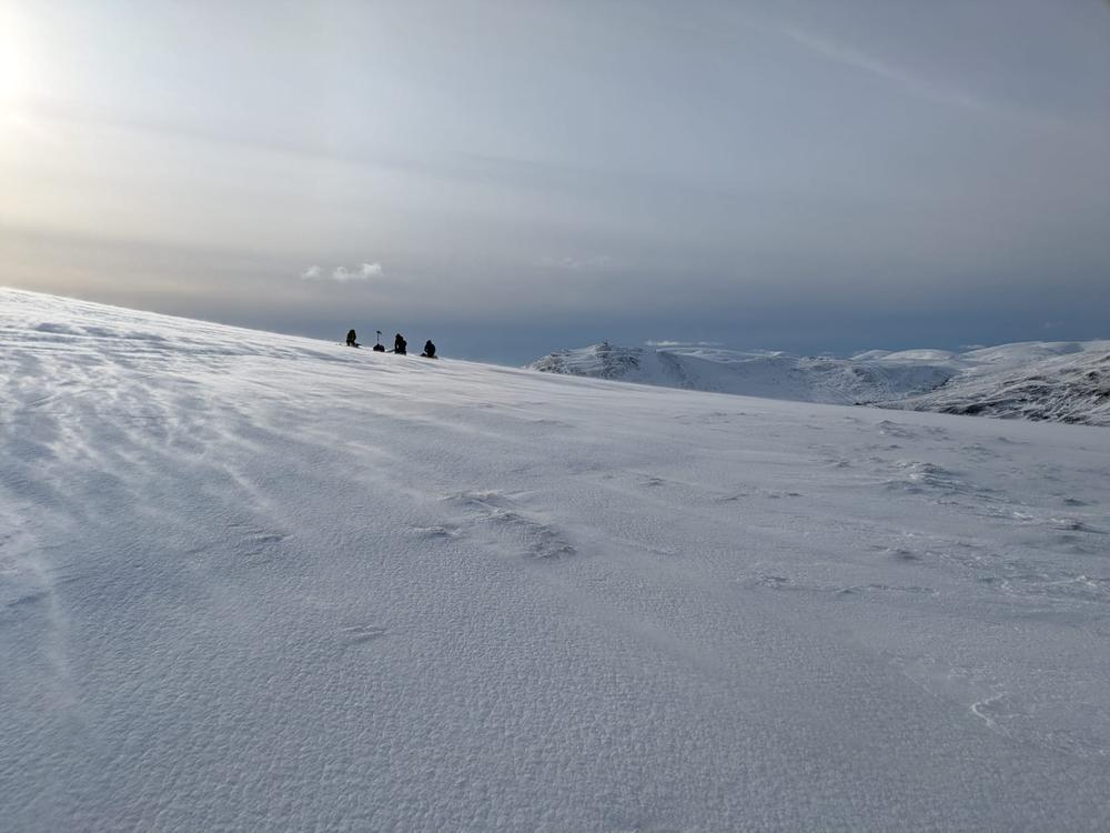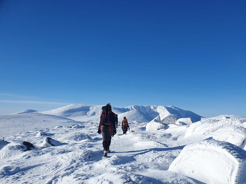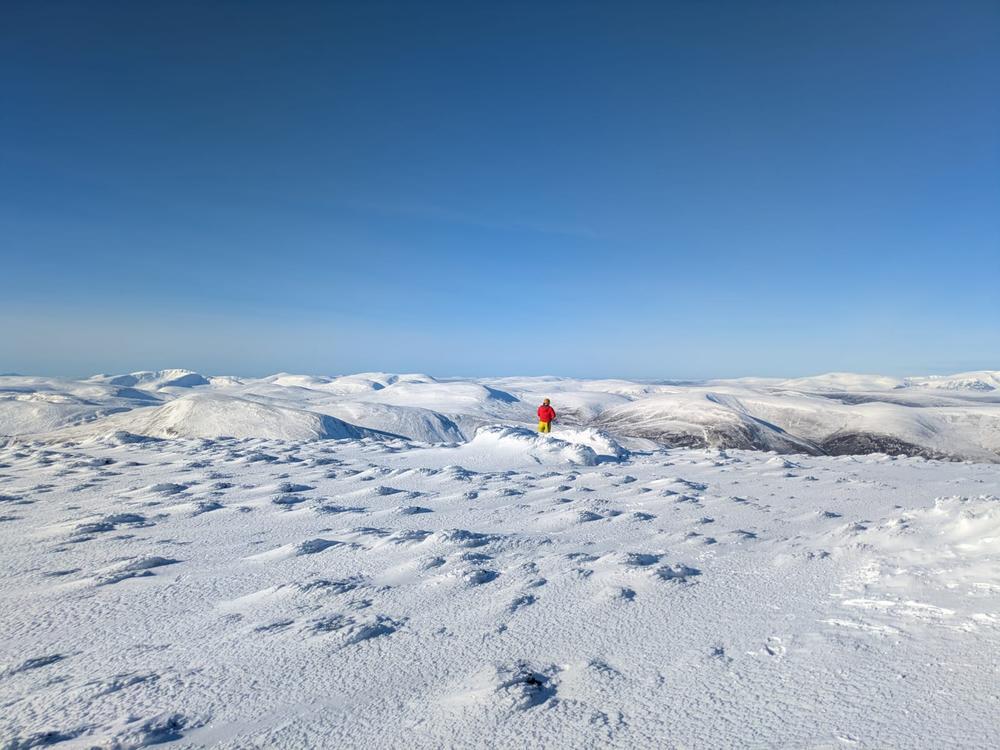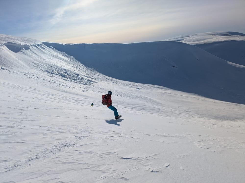 Another group of 7 headed to the delightful Carn na Drochaide (Kenny, Rhi, Gill B, Alison C, Helen, Perry and Kate) splitting into smaller groups and enjoying the sastrugi along the ridge in the sunshine and fantastic views, whilst Allan enjoyed the gorgeous Glen Quioch below.