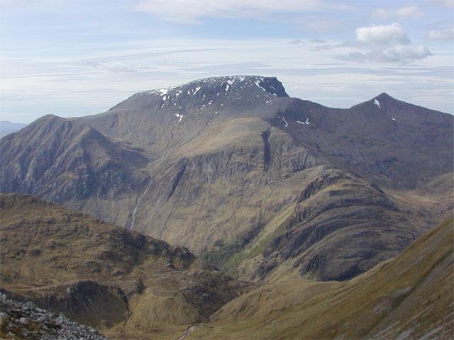 The BBC forecast for Sunday was for low cloud and drizzle affecting all coasts and hills, so a long lie then, listening to the gentle rain patter on the tents. Well no. Another perfect morning actually with azure skies, but somewhat cooler and breezier. Anne and Alison W got a relatively early start, heading off for Stob Gabhar and Stob a’ Choire Odhar in the Blackmount. The rest of us were more leisurely in our departures, enjoying the sunshine. Alan planned a trip across Am Bodach and other Mamores to be met in Glen Nevis by Anne. Kenny and Alison were heading for the Coe and a climb there. Lesley headed for the Graham Beinn na Sroine from Glen Lochy. Owen had various hills in the Fort William area on his tick list. Martin finished the weekend off on the wee Buachaille Munros.