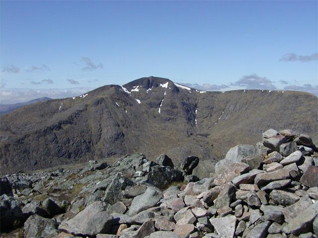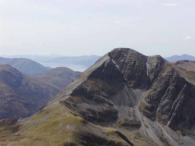 A cool Friday night heralded in a cracker of a day on Saturday with more or less continuous warm sunshine and very light winds, It was clearly a day for ambitious plans to come to fruition. Alison W and Anne C had a big day in the Mamores, starting at the western end, taking in 5 Munros + other tops before time ran out. Lesley headed off for Loch Eil and a long walk in for a remote Corbett in beautiful Cona glen from Calop, returning late in the evening, whereas Owen opted for nearby Garbh Bheinn. With two weeks holiday ahead of him he was in no hurry to burn out on the first day. The rest, Alan and Anne R, Kenny, Alison C and Martin opted for a classic scramble on Ben Nevis, namely Castle ridge. This proved to be a demanding scramble, with fabulous exposure on the crux of the climb near the top and truly awesome views over adjacent buttresses and into still snow filled gullies. All difficulties on the climb were overcome without many problems and we were soon on the plateau and heading for the summit. The highest mountain in Scotland is not a place to be alone, especially on such a fantastic Spring day, and there must have been up to a hundred folk up there, soaking in the sunshine and 360 degree views to near and far distant hills and Islands. Sadly the rescue helicopter spotted from the Carn Mor Dearg Arete to the nearby Aonachs was on a real mission, and a fatality was later reported following a fall from one of the ridges.