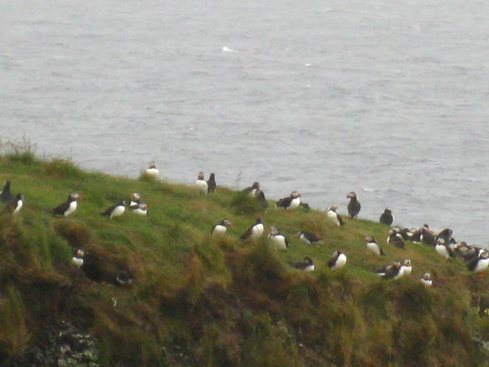 On a cold, rainy Saturday with the cloud base less than 150m, Fiona C, Nigel, Tim, Marcus, Allan and Kate headed off on the ferry to Canna for the day. An enjoyable day was spent watching the puffins on Sanday, with two lunch stops in the shelter of the porch of an old church and very welcome beers and coffees in the lovely wee cafe on Canna. Nigel and Tim climbed the Marilyn on Canna (Carn a Ghaill), although there was no view from the top even though the summit was only 210m! The rest of the group stayed on Rum, with Tony & his two friends and Charles walking down to the mausoleum at Harris and Alan R taking a tour round Kinloch castle.