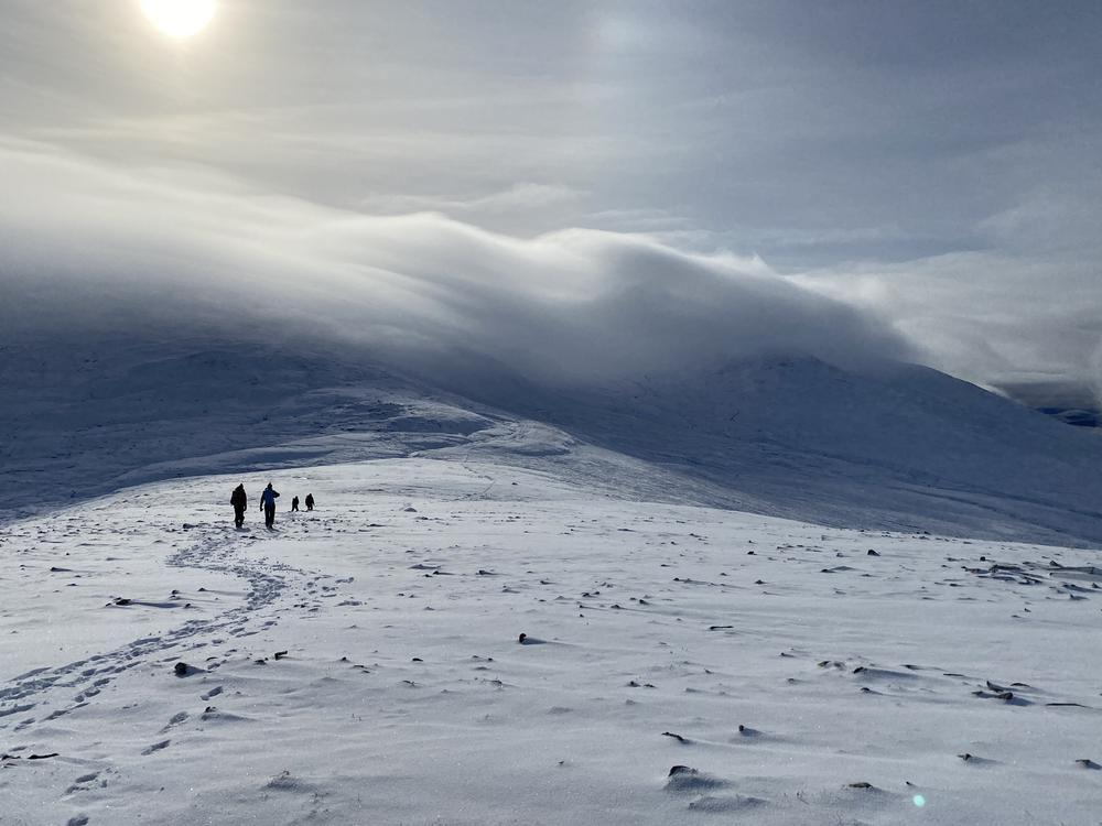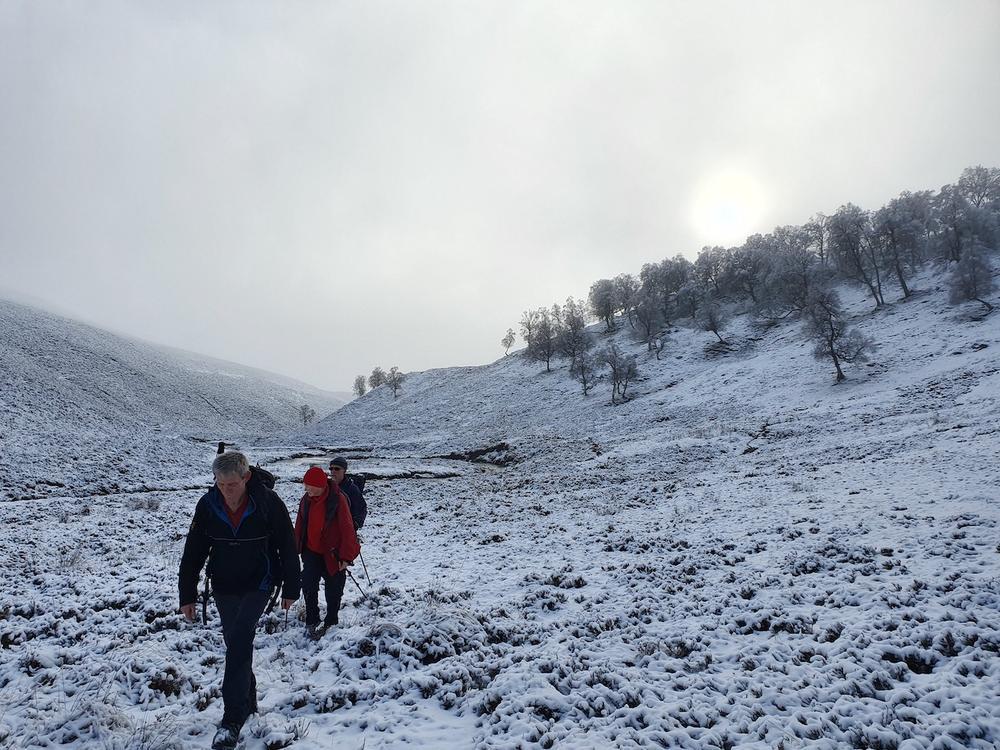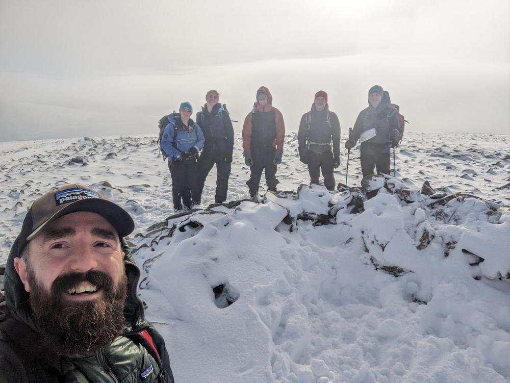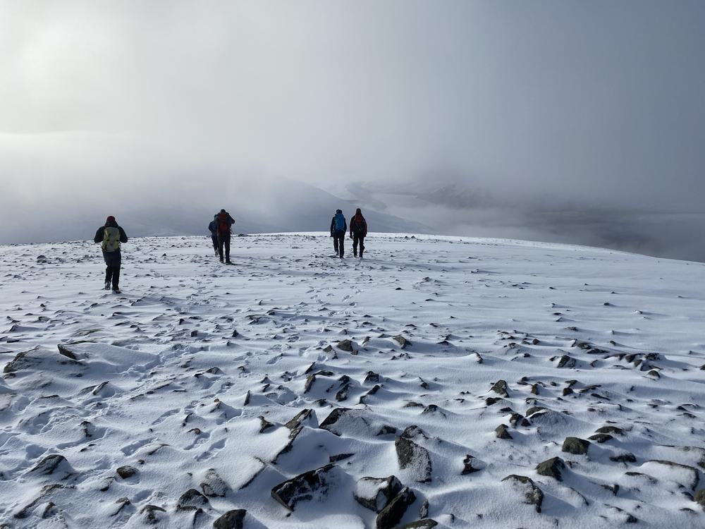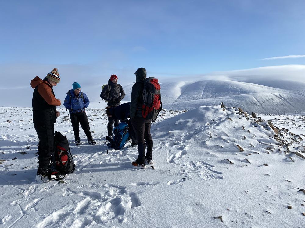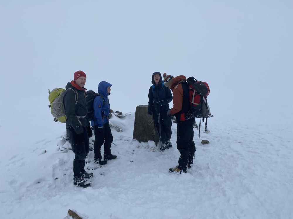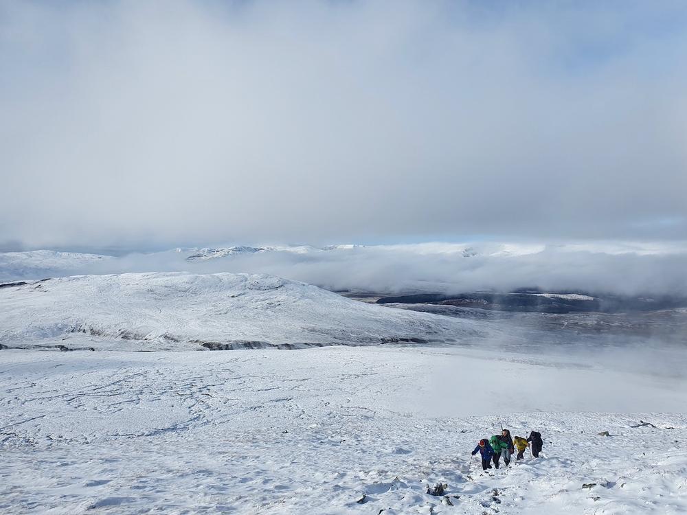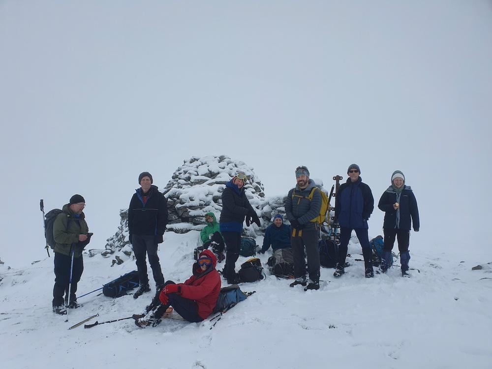Other expeditions included Ken and me on Gairbeinn from Garva bridge (not the usual start point but the roads were a bit iffy); Kate, Allan S and Lydia on Meall Nan Eagan; Tim D, Chris W and Oscar on the Monadhliath and Hayley who did a walk from the hostel around Coachan Forest and down the Loch. Mike, Fiona, Peter, Joh, Mark and Hamish tackled the 4 munros on the West side of the A9 – a few happy munro baggers albeit Peter had to turn back to search (successfully) for his dropped ice axe.
