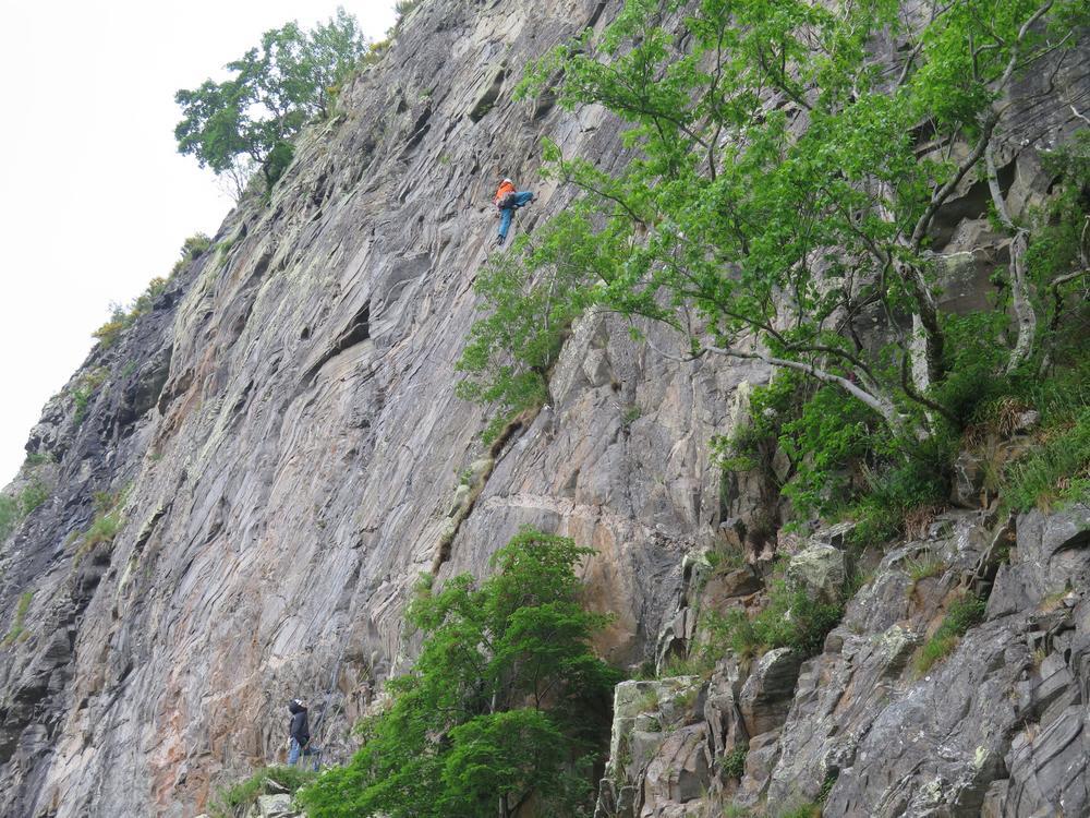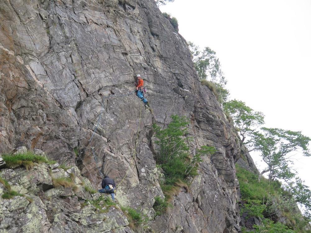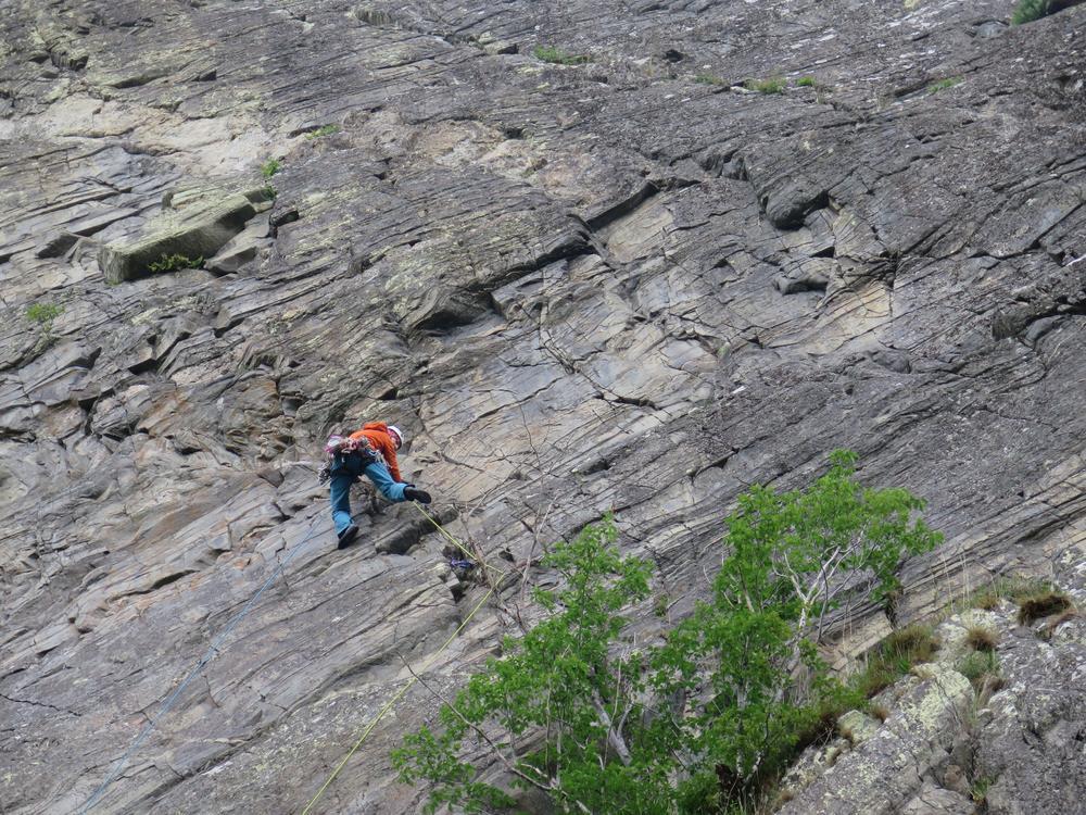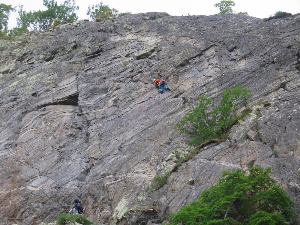 Sunday started sunny but gradually the cloud crept in. Emma headed off to do Beinn a’ Ghlo, Gillian and Margaret headed for Meall na Leitreach with Mike, Fiona, Alison and Kenny heading to Creag Dubh for some climbing where they met up with Fiona M. Climbing continued until rain stopped play just after 4pm. By the time we were heading south down the A9 it was torrential.