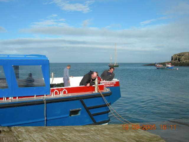 On Monday morning it was again absolutely pissing down, but this time coupled with a howling gale so, jigsaws were started, cups of tea were drunk with only one brave soul venturing out first thing. Hywel left at 9am to go and see if the sands would sing for him but again they kept quiet, he did say however that it was “f…g pissing down” and that he was a wee bit damp. Despite initial worries, the weather did ease and both Cal Mac and the Sheerwater turned up on time to take us back, by this time it was a glorious day with blue skies and light winds. The journey back was superb and showed off the west coast at its very best, maybe even the sands were singing.