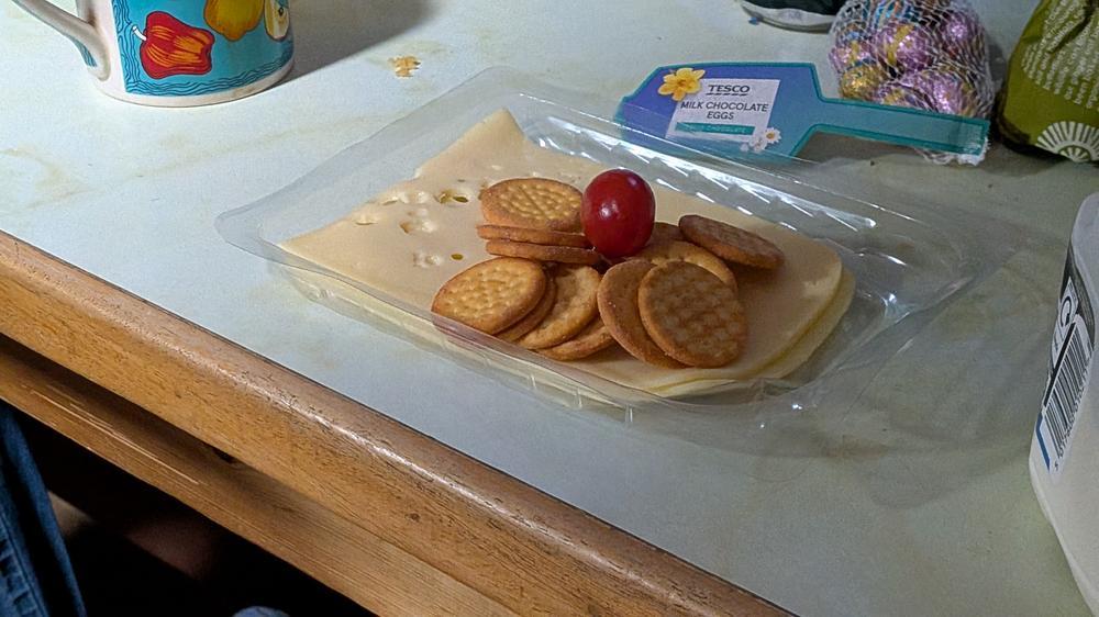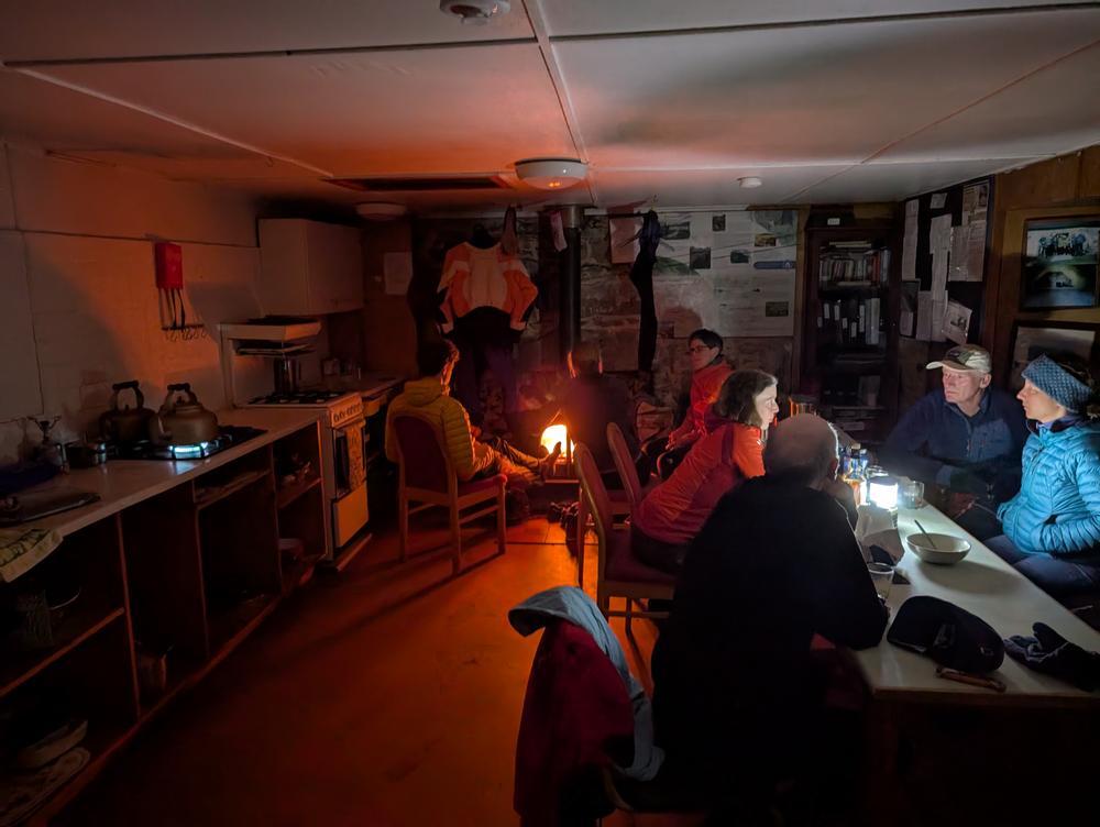 Doug & Rhi provided super tasty popcorn as a communal starter for tonight’s dinner (thanks!), and there was still a bit of crumble left (plus remnants of Mike’s and Steve’s Sloe Gins, Steve’s port and Perry’s whisky) to finish off the day. It would have been a shame to have to carry any of those treats out again.