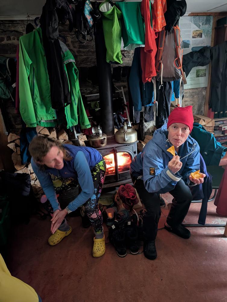 Over the course of the evening also Gillian, Perry, Iain, Helen, Emma Y and Claire H arrived. A fire was started in the wood burner whilst people got comfy, and Steve M and Claire H pitched their tents as the rain arrived.