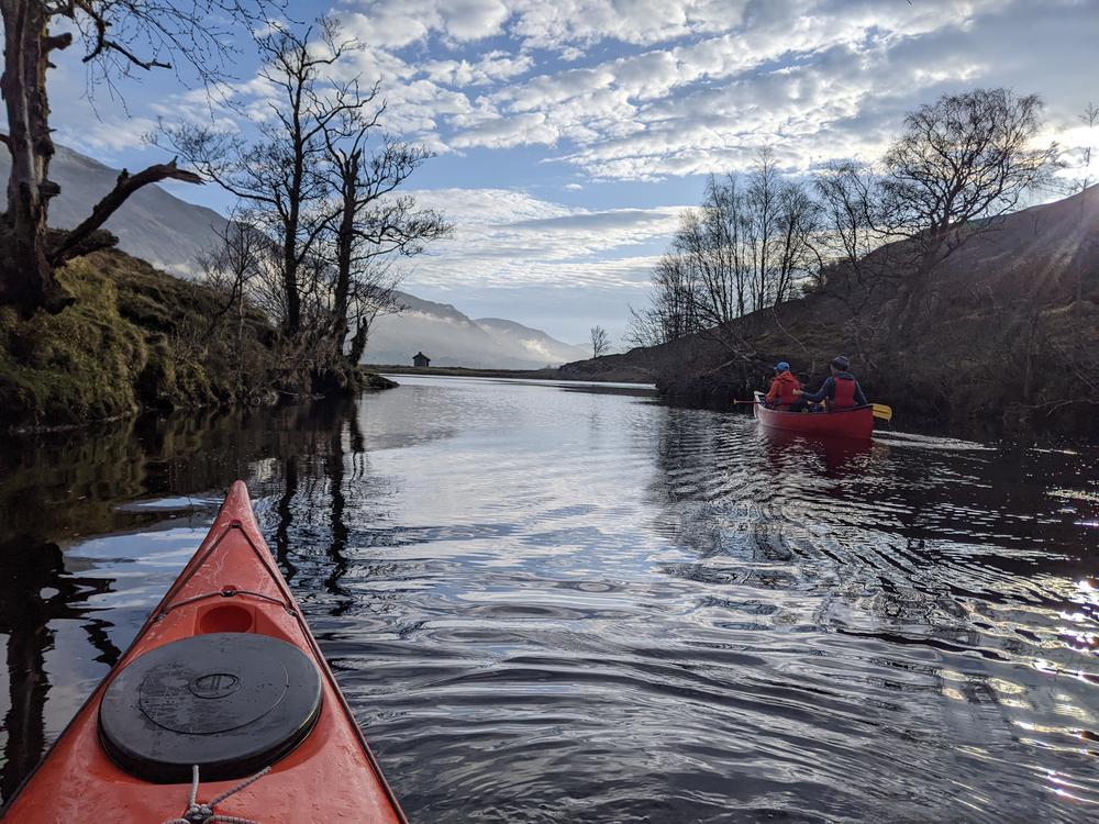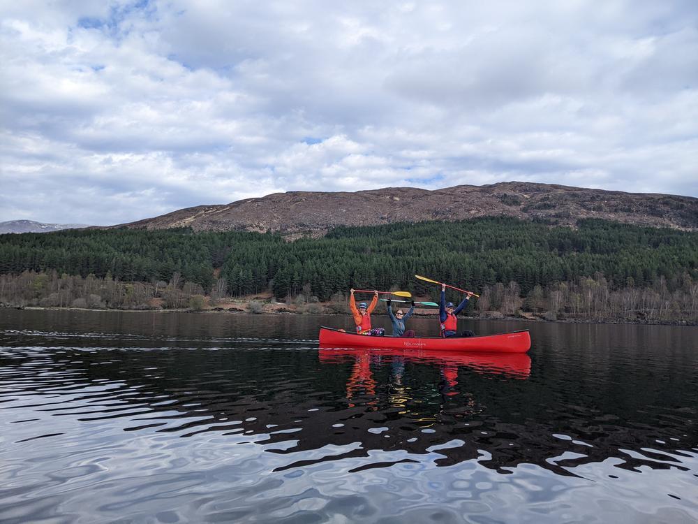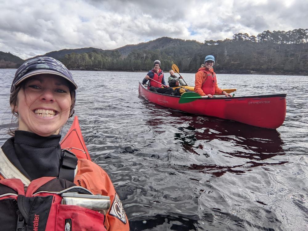 Anna, Doug and Rhi paddled out with stunning morning colours and amazing loch reflections, meeting Steve and Helen at the car park for a 5 (wo)man strong team for the final paddle to return to the car.