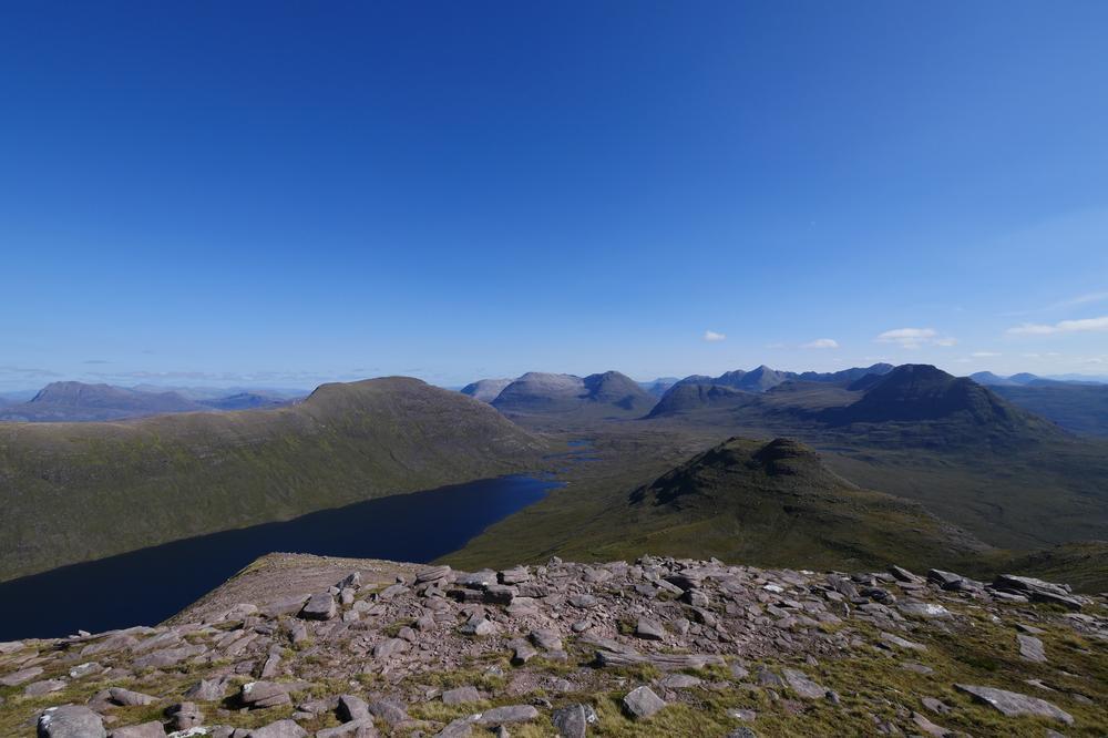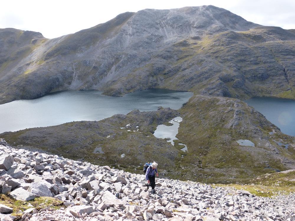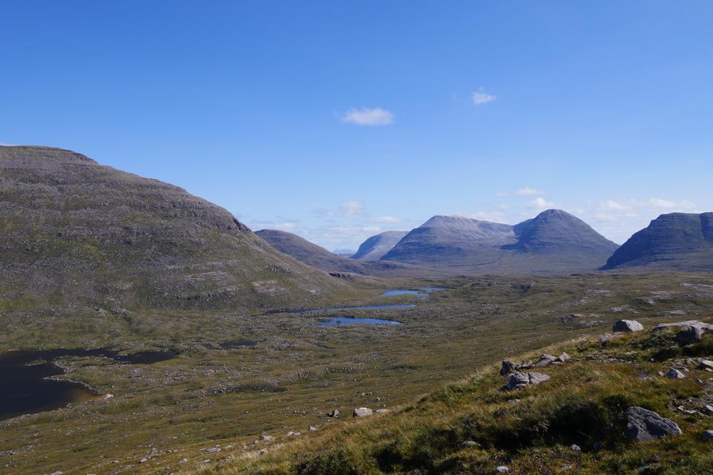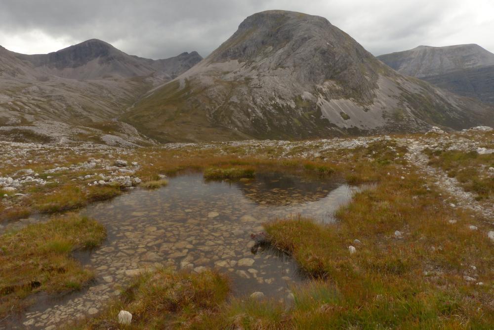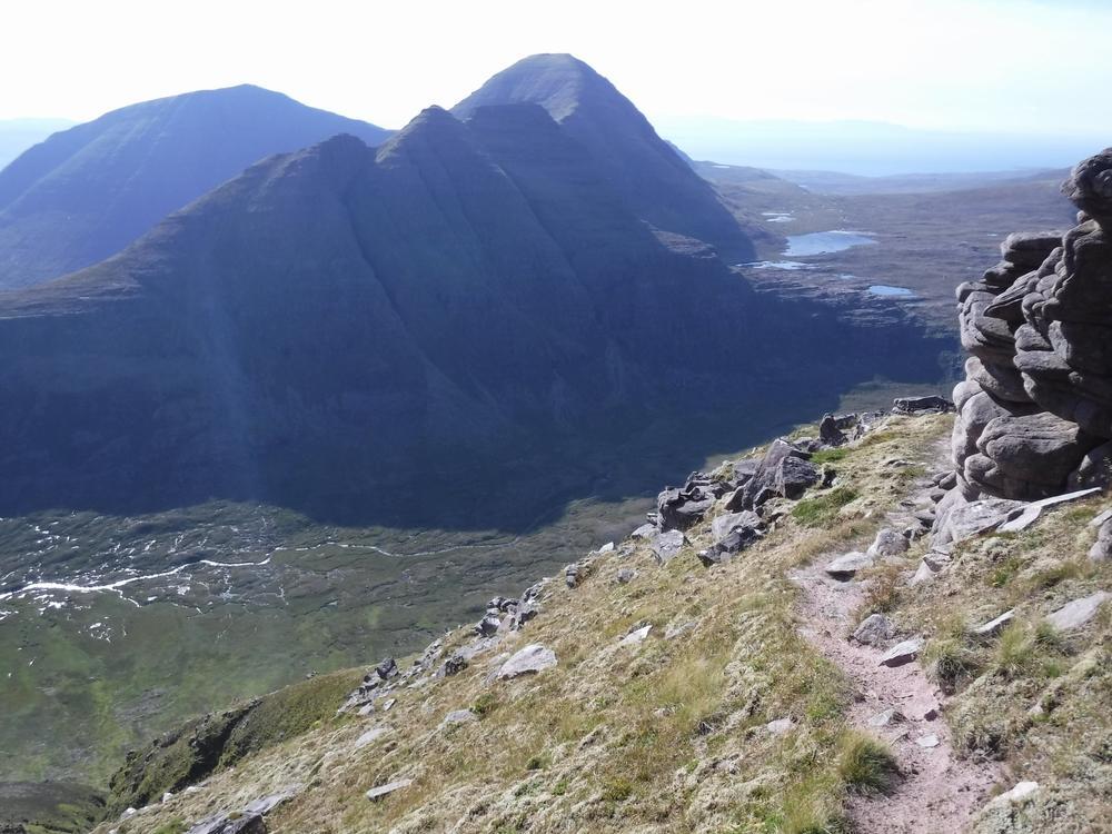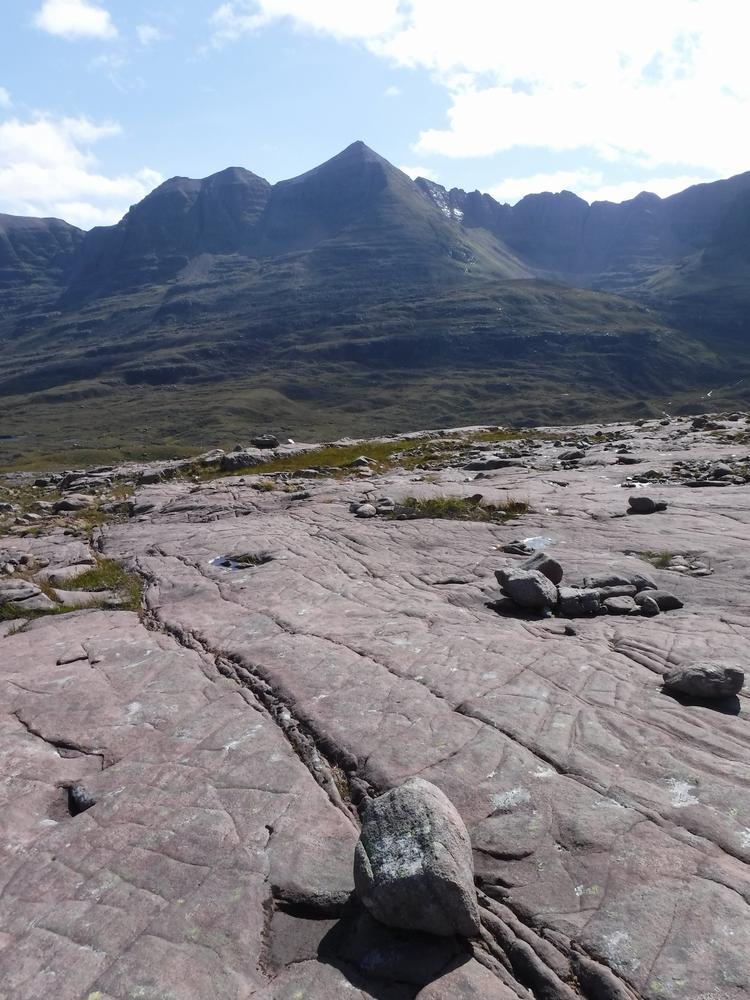 I failed to convince a single convicted Corbett- or Munro bagger to join me on my planned stroll [epic]. Setting off early on Saturday I did a traverse of Beinn Eighe (all of it, including the pinnacle scramble and 2x Munro summits) from Kinlochewe, followed by Beinn Dearg. A bit of time-wasting (bilberry-eating) and an aborted attempt to get back down to the glen south of the summit set me back quite a bit and I canned the idea of going up Beinn Alligin to complete the trio but had an excellent day nonetheless. As planned, I bumped into Tim as I was descending; he was on a mission to bag as many Corbetts as possible, having now passed the half way mark. He had started with Sgurr Dubh/Sgorr nan Lochan Uaine in the morning and transferred across the glen for the ascent (from sea level) of the second biggest non-Munro there is.