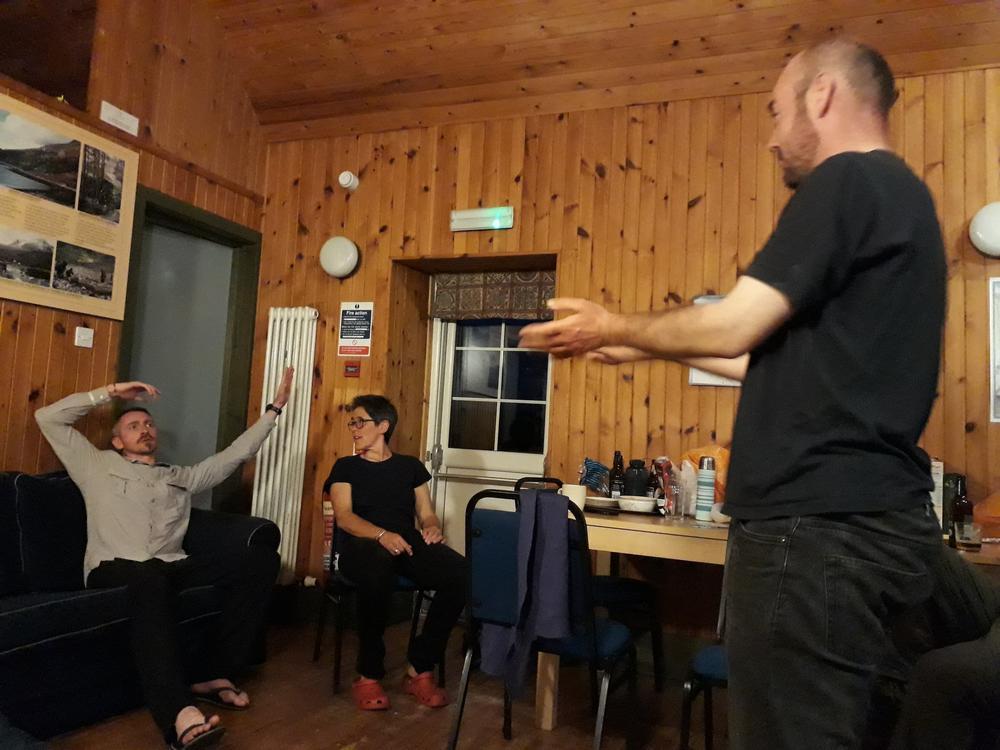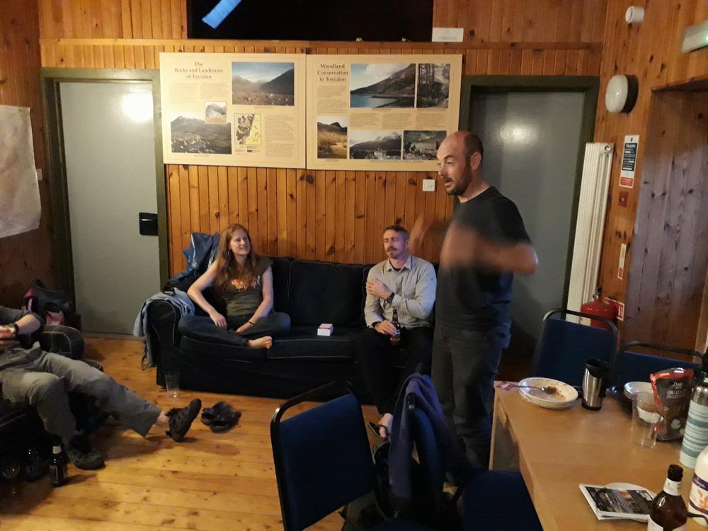 Kenny caught the train to Achnashellach, camping up high near Fuar Tholl in hope of a sunset to no avail. After a chilly night on Friday he walked over Sgorr Ruadh and a suspected Marilyn on Saturday, joining the fray in time for a few rounds of the board game Articulate. In the style of “Mornington Crescent” the rules morphed as the game went on, and there were some memorable moments whilst trying to act out “flounder” or one of the planets of the solar system.