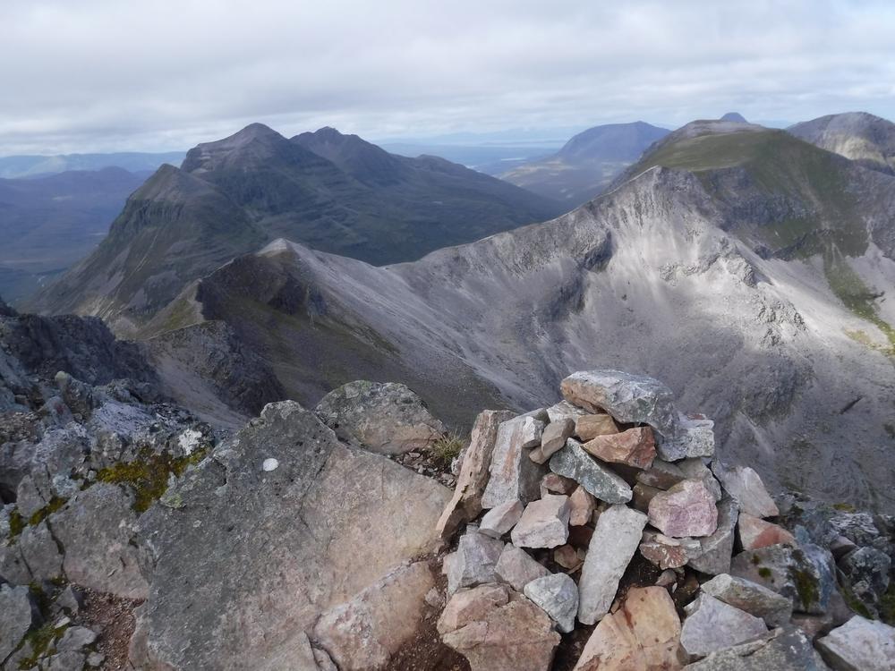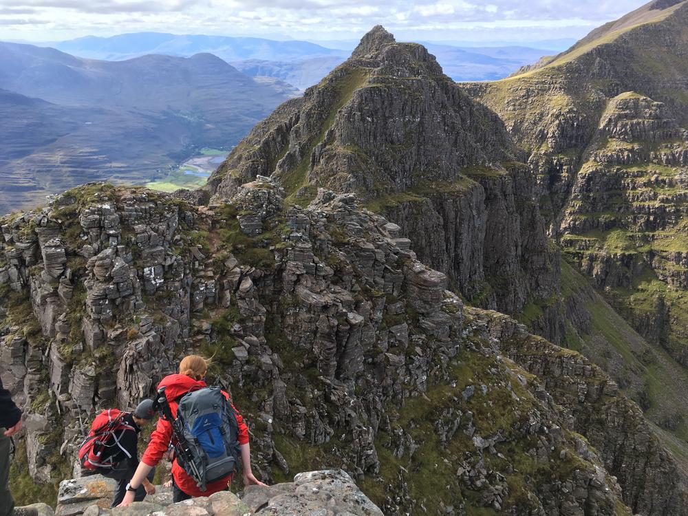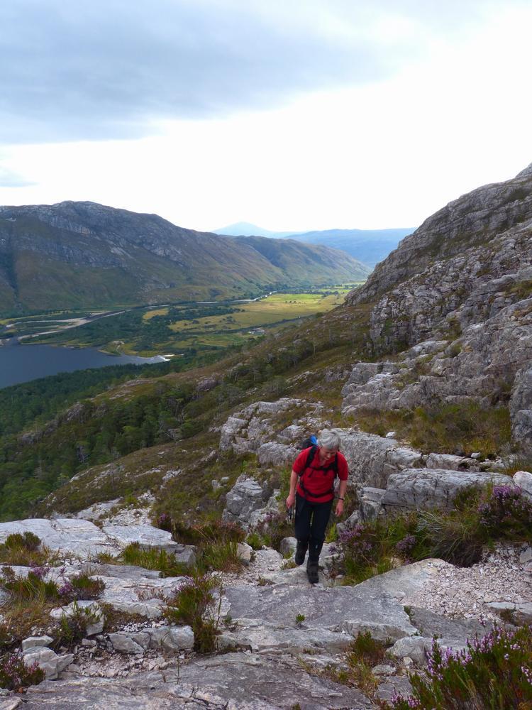 Kate and Philip had such a colossal day in the Flowerdale forest that Philip stated afterwards “I’m never walking with that woman again!”. They clambered up Beinn an Eoin followed by Baosbheinn and enjoyed views directly into the northern corries of Beinn Eighe. It all started to fall apart on the way down as the non-existent path got rougher, and rougher… and a 4km surge through incredibly inhospitable tussocky/boggy/heathy terrain resulted in some choice phrases and, I’m told, some synchronised tumbles! They were last back at the digs and spoke not a word until they’d got some dinner down themselves!