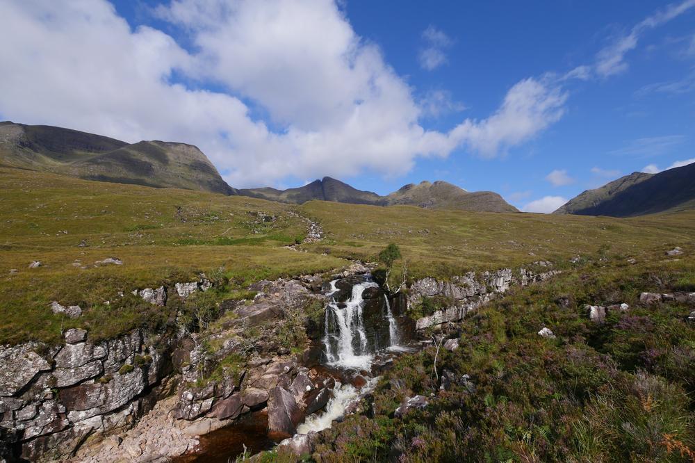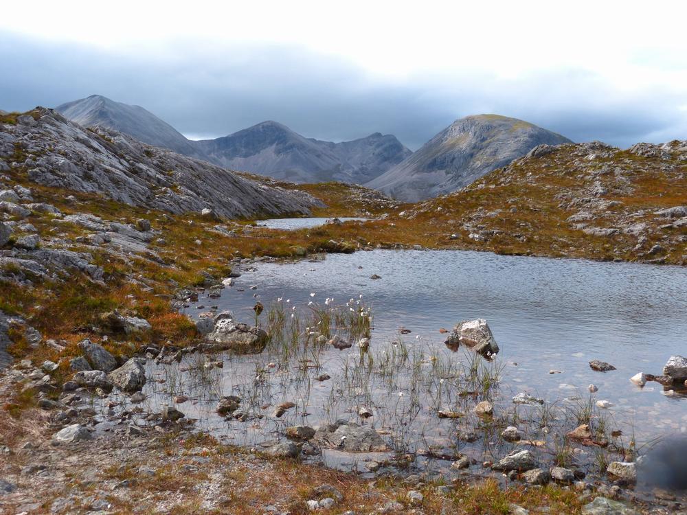 Kate and Claire started the weekend early with an overnight stay at the Torridon SYHA and two Corbetts on the south side of the glen – Sgurr Dubh and Sgorr nan Lochan Uaine – and finding ptarmigans and lots of lochans en route. Philip amused himself on Beinn Dearg that day; Marcus portaged Kenny’s carrier bag up the road, and stopped off at Rogie Falls for a look-see on the way to Mol Mor. Tim scooped Chris R up in Garve and the others arrived in various dribs and drabs.