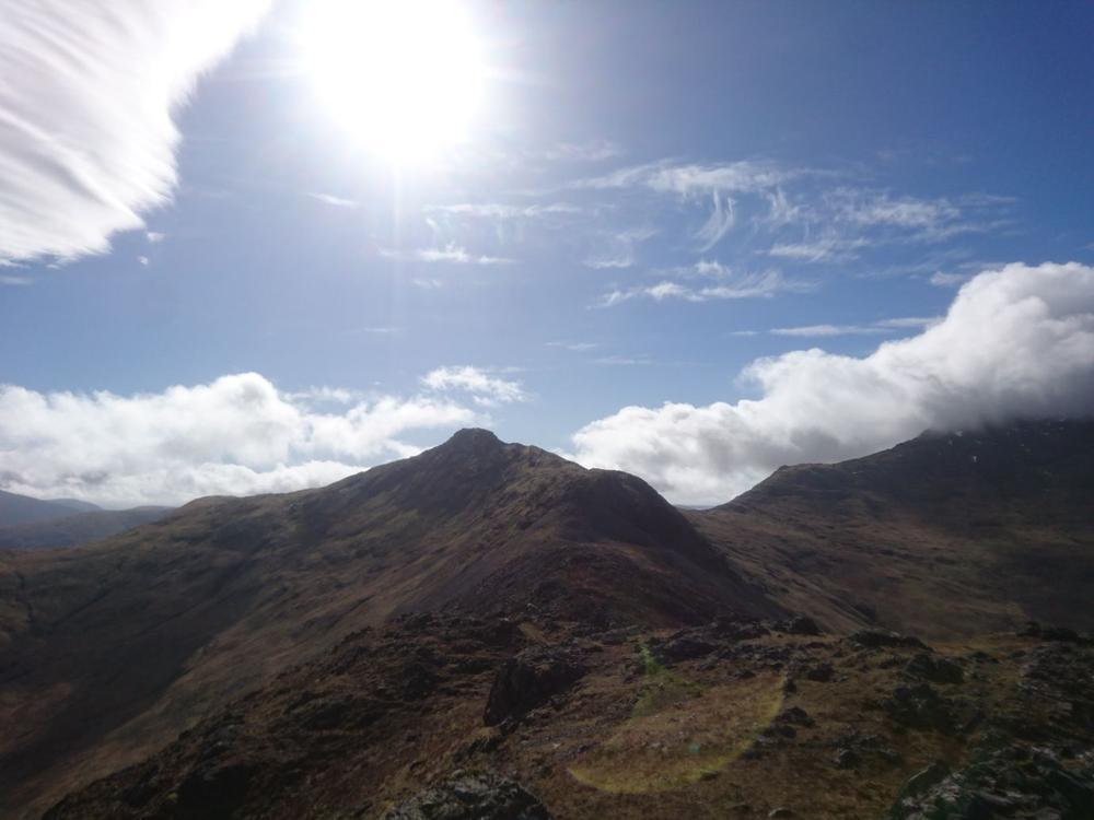The remaining EMC members busied themselves with a variety of activities; Nigel added to his Marilyn collection by going up Coire Bheinn, Beinn na Sreine and Beinn na Croise with stunning views from the last. Anne and Alan walked over Creach Beinn and Ben Buie with stop for lunch at the car in between the hills. When they returned to Craignure, Alan went for a run over Sgurr Dreag and Dun da Gaoithe, reporting dark and foreboding skies to the west on his return.