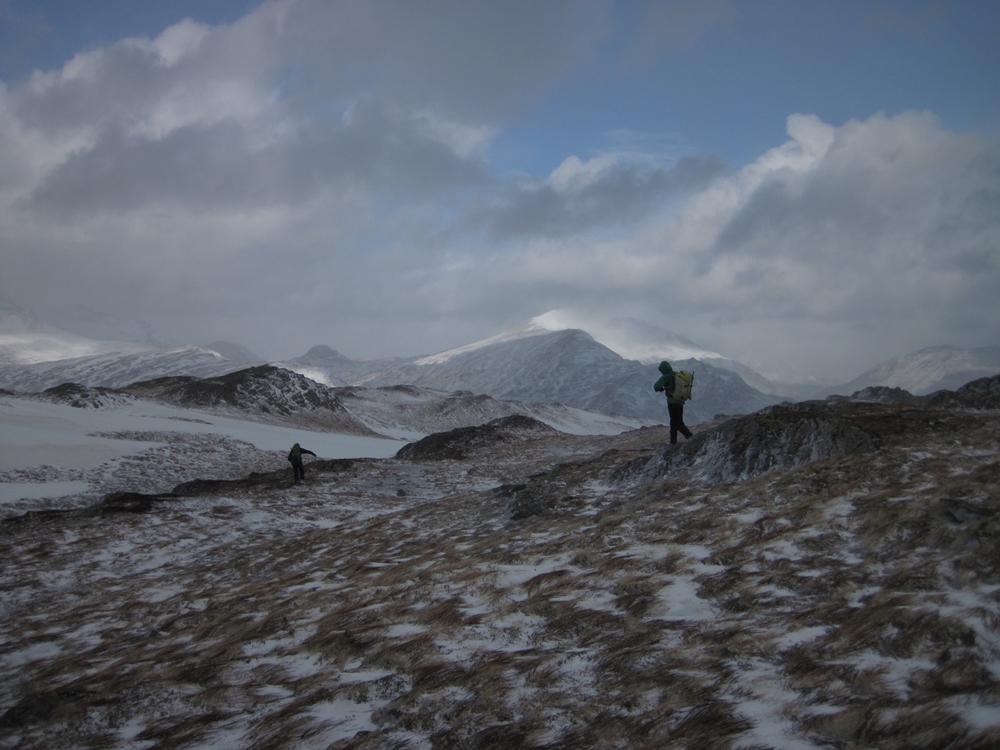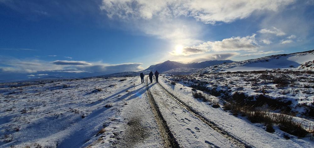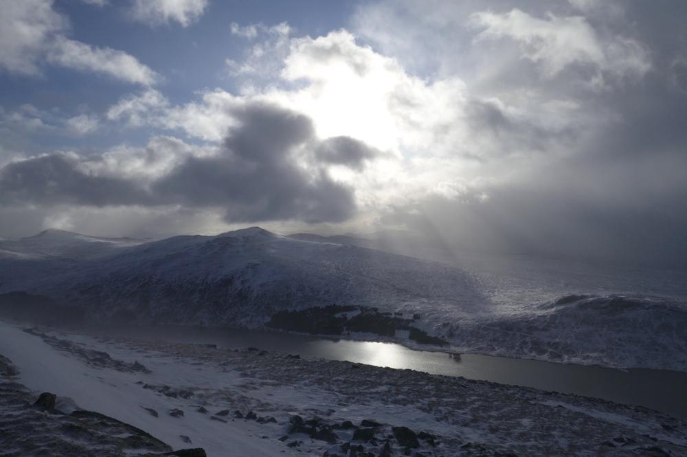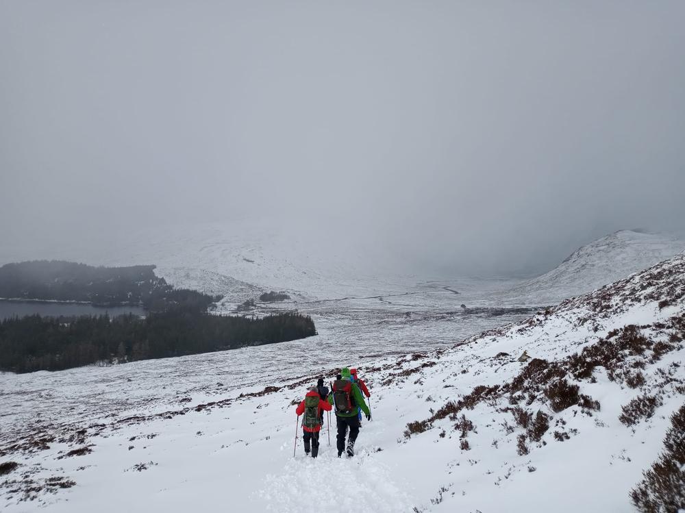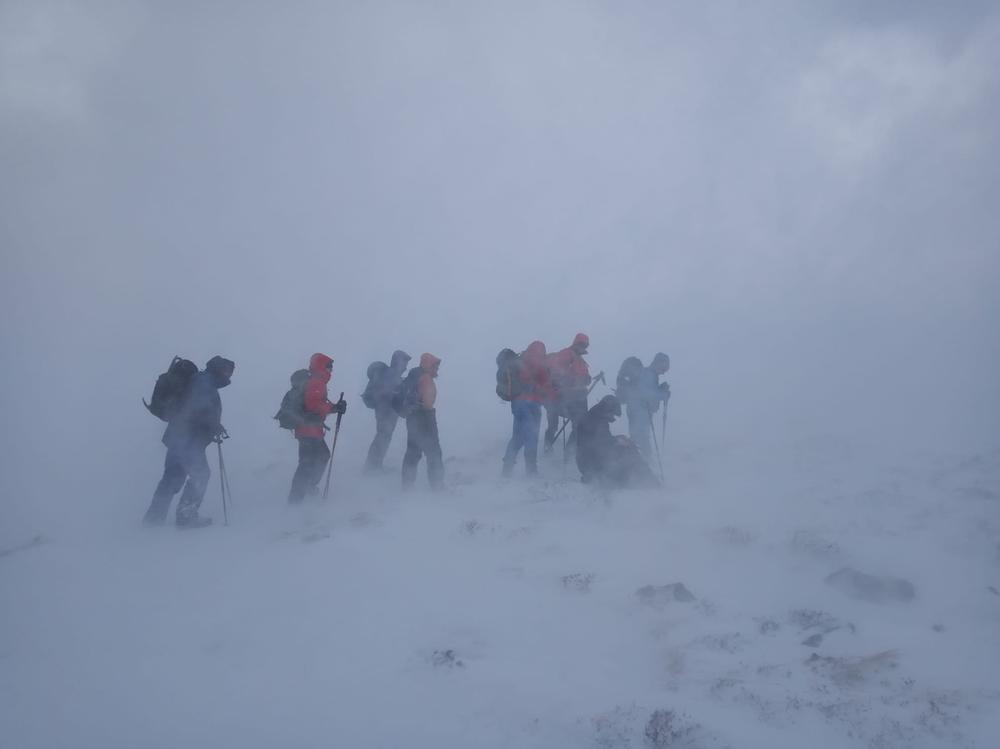 The bulk of the crew took the afternoon train from Crianlarich and arrived at the bunkhouse around 4pm, a quick wander up the Loch for some and then dinner. Fiona M, Mike & Fiona R came on a later train from the north and Emma C, Claire H, Martha & Kamila came in on the late train just before 10pm. A windy night for all with gales and snow blizzards throughout the night and then a reasonably early start on Saturday,