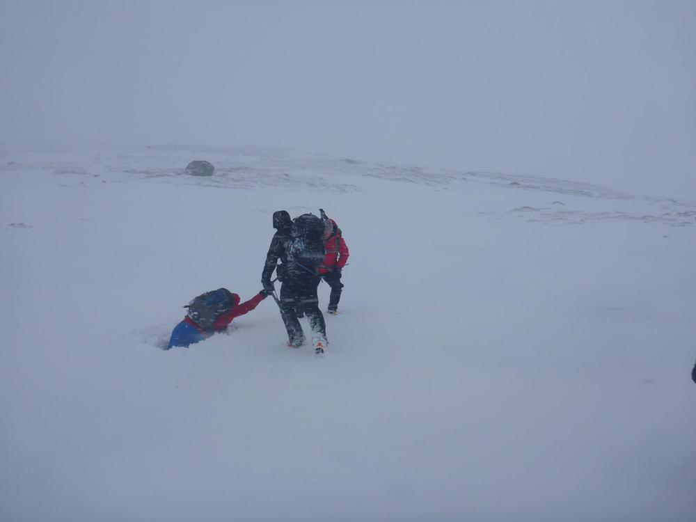 With Saturday came a mass ascent of Beinn Na Lap with David T, David B, David A, Chris Ro, Martha, Emma C, Claire H, Kamila, Charlie and I. The weather started ok-ish, and ended with us pinned to the floor at the summit with blasting squalls. Our original plan to carry on down the far side was cut short and we bugged out back to the hostel. Meanwhile both Fiona’s and Mike headed up to Loch Treig for two Graham’s and Kate, Allan S, Alexander and Gillian took a long walk around Loch Ossian via a couple of lumps and bumps. ‘Character building’ would be a good summary of Saturday but all came back with smiles and laughter (or at stress induced hysteria). An afternoon of raucous games for the Beinn Na Lap crew was followed by more Loch Ossian walking and even some sledging!