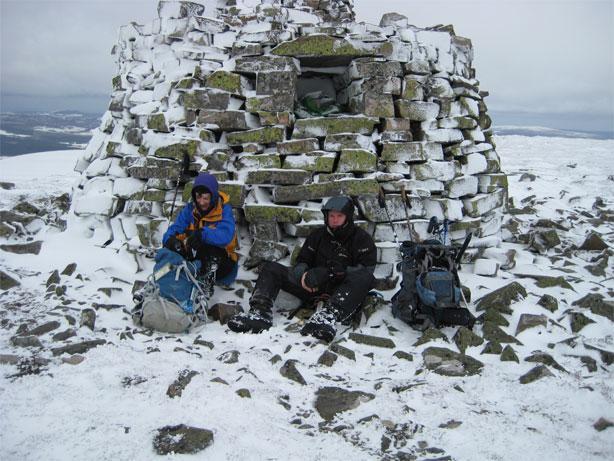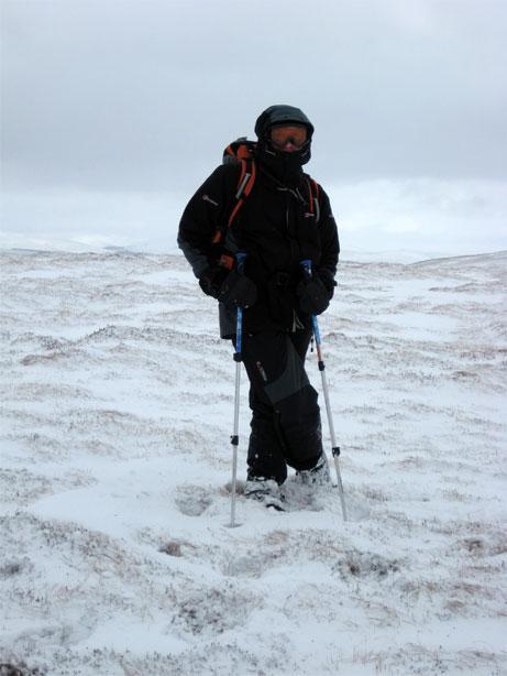 Anne and I went up to Strathfarrar and expended large amounts of energy wading through snow to get to the summit of Ben a Bha’ach Ard. West was a good idea, as here the snow stopped at about eleven o-clock and we even saw a big yellow thing in the heavens on more than one occasion. We had a pretty good day, but as we came back down the A9 that afternoon we were once more in a blizzard. Penny, Helen and Ron also went west and climbed A Chailleach and its neighbour Carn Dearg. They were finally rewarded by spectacular views after nearly freezing to bits in the bitter northerly wind. Three cheers for bothy bags!