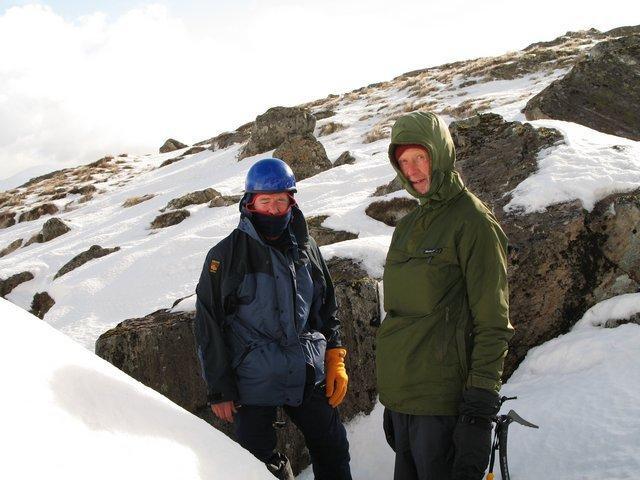 This was an eagerly anticipated weekend to one of the remotest parts of Scotland, easily accessible due to the presence of the West Highland rail line, which runs from Glasgow to Fort William. Most of the 14 club members met at Crianlarich on Friday night for the hour long train journey to Corrour station. The party atmosphere of the train journey, with the well stocked drinks trolley wheeled up and down was left with reluctance for the desolation of Corrour’s dark 1500′ high station. Nevertheless, a mere mile walk by head torch on a bright but dry cold night saw us safely to the welcoming, wind turbine powered lights of the hostel, with Nick, the resident warden of this SYHA Establishment having the roaring coal and wood fire stove going well. I couldn’t help thinking about the cult film ‘American werewolf in London’ on approaching the lights of the hostel, but Nick’s friendly terrier dog was only keen on snapping up spare food rather than unsuspecting EMC member’s jugulars!