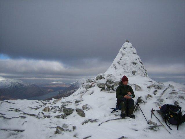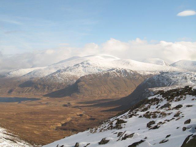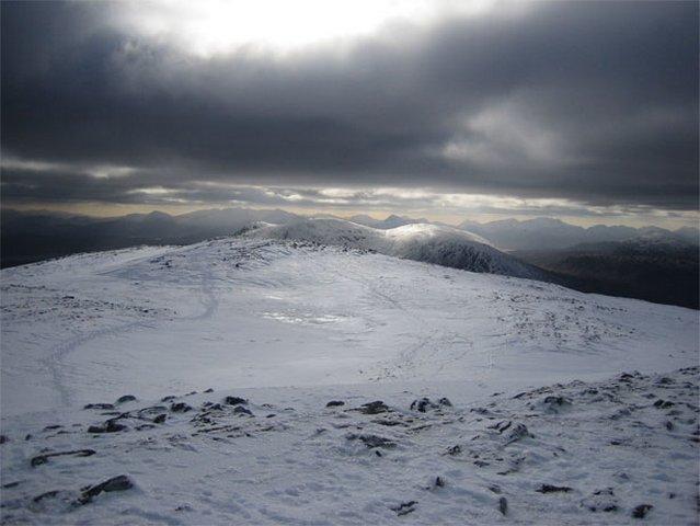 With cold polar air from the north and north east prevailing for the weekend, the forecast was basically set fair, and with the white stuff established above 2000′ this was the first real winter weekend for the club in 2006. Saturday was a bit disappointing however, being one of those ‘bright too soon’ days, with hill tops disappearing into cloud and freshening winds, giving rise to the experience of considerable buffeting, a current buzz phrase of mountain forecasters, and poor visibility near the tops. On Sunday the summits were clear but there was even more buffeting. Nevertheless, the club stalwarts ascended all the local Munros and Corbetts, with remoter objectives of Chno Dearg via the winter climbing crag of Meall Garbh and the Easains above Loch Treig also achieved. Leum Uilleum in particular, the Corbett above Corrour station gave a delightful horseshoe walk.