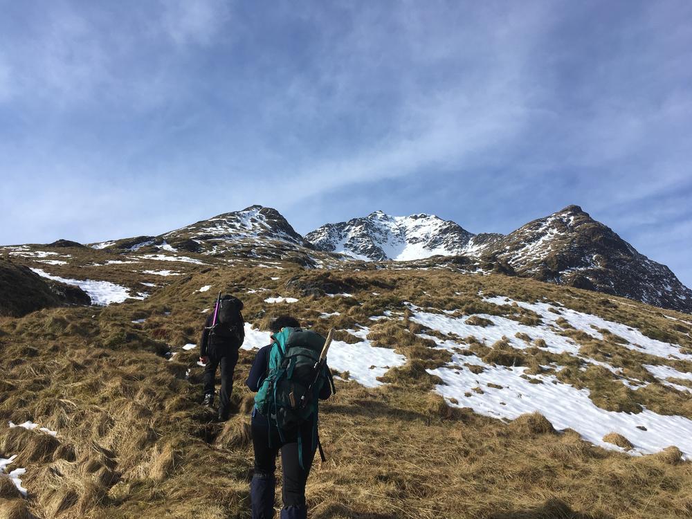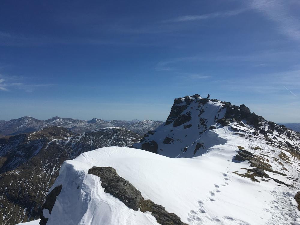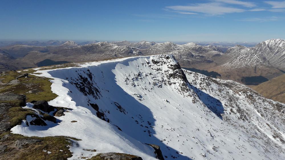 With blue skies and sunshine, it was hard for any of us not to have a great day out on the hills. Fiona M completed the munro tops on Ben Cruachan; Anne C and Alison C with friends Ruth and Simon, headed up Ben Oss and Beinn Dubhchraig, The Renvilles and EMC alumni Alistair ventured up Stob Ghabhar & Stob a’Choire Odhair; Kate, Alison F, Perry, Emma, Chris W, Sam and Jenny enjoyed spectacular views from Stob Coir’ An Albannaich; Alan H followed Kenny’s tracks from Friday up corbett Ben Mhic Mhoniadh; Antti went running along the West Highland Way, and I had a leisurely day across the tarmachan traverse to Meall nan Tarmachan.