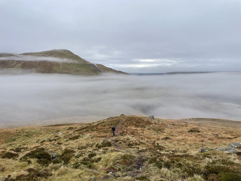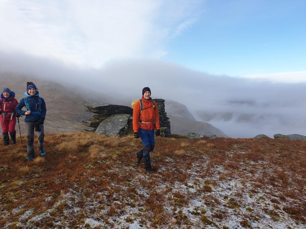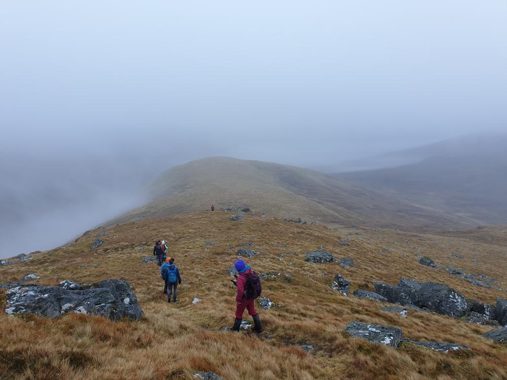 On Sunday morning, the weather wasn’t quite as glorious as on the previous day, but most groups at least got a partial break in the clouds. Alison F returned by bike to Dunblane train station, and Kate and Steve had a nice stroll down to the Loch. James enjoyed his run on Sron A Chlachain & Meall Clachach. Ken, Perry and Shireen went up Meall nan Subh from Glen Lochay. From the same side, Balandino, Nicola, Rhi, Claire, Neil, Tim D, Alison C, Fiona, Mike and myself linked up Meall Ghaordaidh with Beinn nan Oighreag. Helen, Duncan D and Keith made it halfway up Beinn Ghlas but turned around early as Keith had lost his wallet. In the meantime, Alan had found Keith’s wallet at the Ben Lawers car park and called Keith – but Keith thought this must be a pocket call and didn’t pick up the phone (an early contender for next year’s Poulet d’Or perhaps?). Anne & Alan had a good walk on Beinn Ghlas & Meall Corranaich, whilst Margaret & Gillian had a brief glimpse of blue sky on Creagan na Beinne on the south side of Loch Tay.