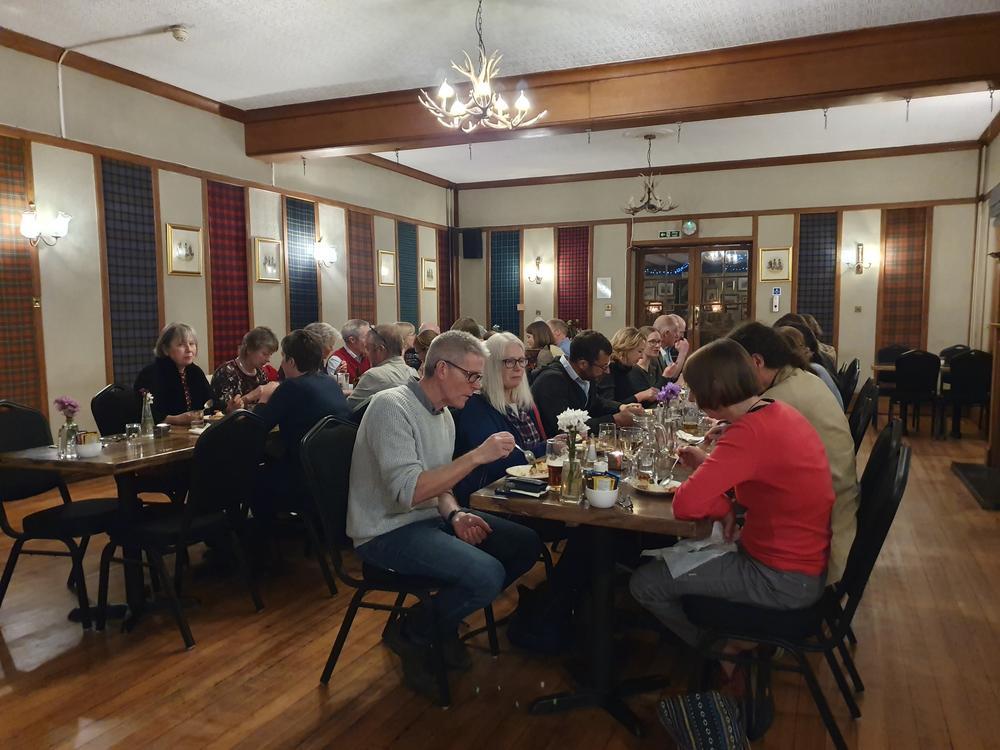 The log fire in the bar in the Killin Hotel warmed up everyone again whilst more and more members got together for drinks, dinner and lots of chats and route planning for the next day.