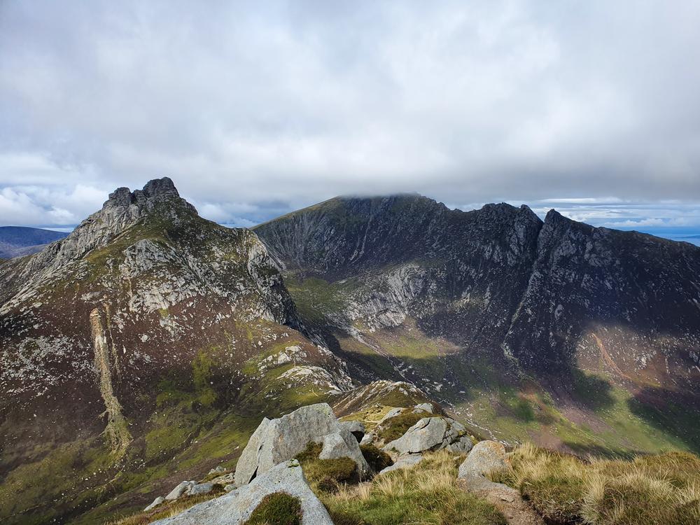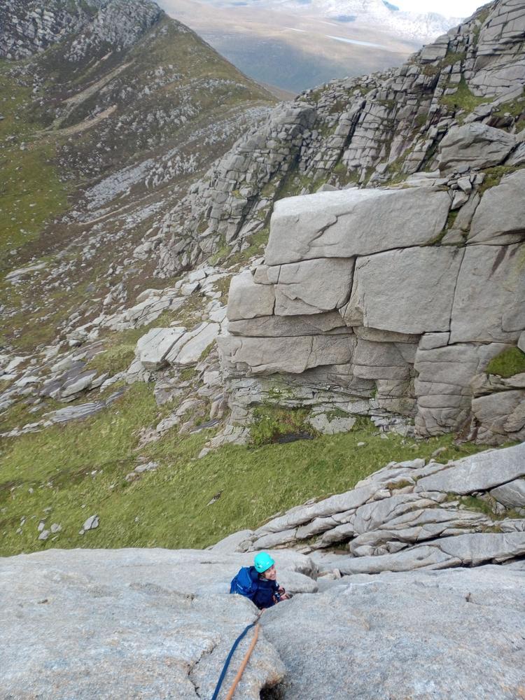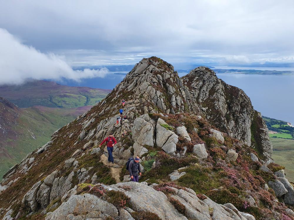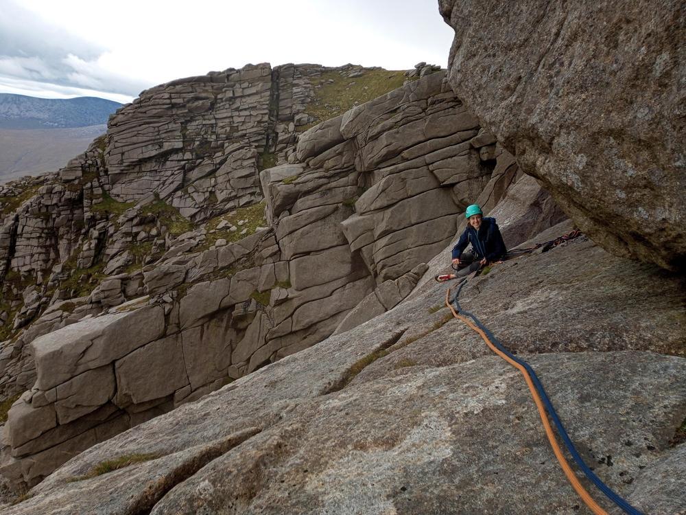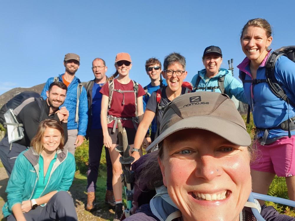 The large party (Me, Martha, Kai, Bethany, Mike, Karen, Brendan, Shireen, Emma Y, David T) on Saturday went for a scramble and walk around the stunning Glen Sannox. Shireen started a shorts trend which led to a proliferation of bloody knees throughout the day as we hugged the sharp granite on our scrambles. A sub-group of us added Goatfell to the round and found the scramble between North Goatfell and Goatfell quite lovely!