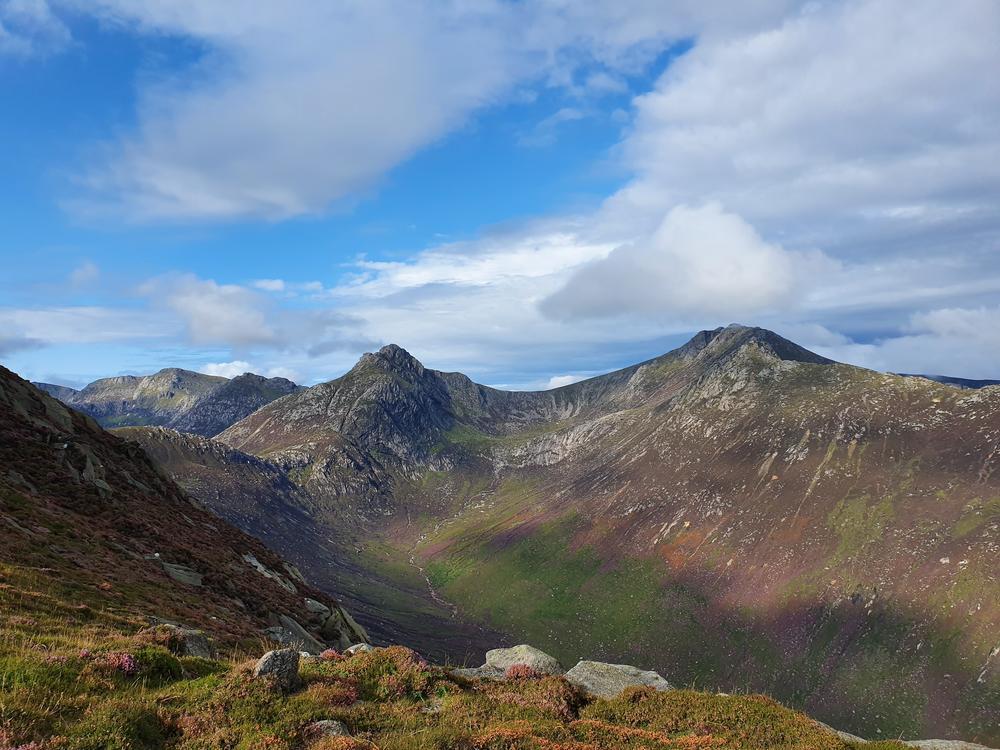 On Sunday, the large party headed for Brodick by which ever means they liked. David T, Keith, Shireen, Kate, Kai, Bethany and Brendan went up Beinn Tarsuinn from the campsite in Glen Rosa going over the three bens. Allan and Emma went up Glen Rosa and back to a cafe in Brodick before rejoining the others. Karen and Mike, meanwhile left from Lochranza and went over two of the Corbetts, arriving in time for a lift back to the youth hostel.