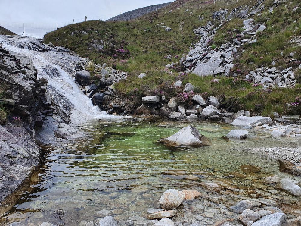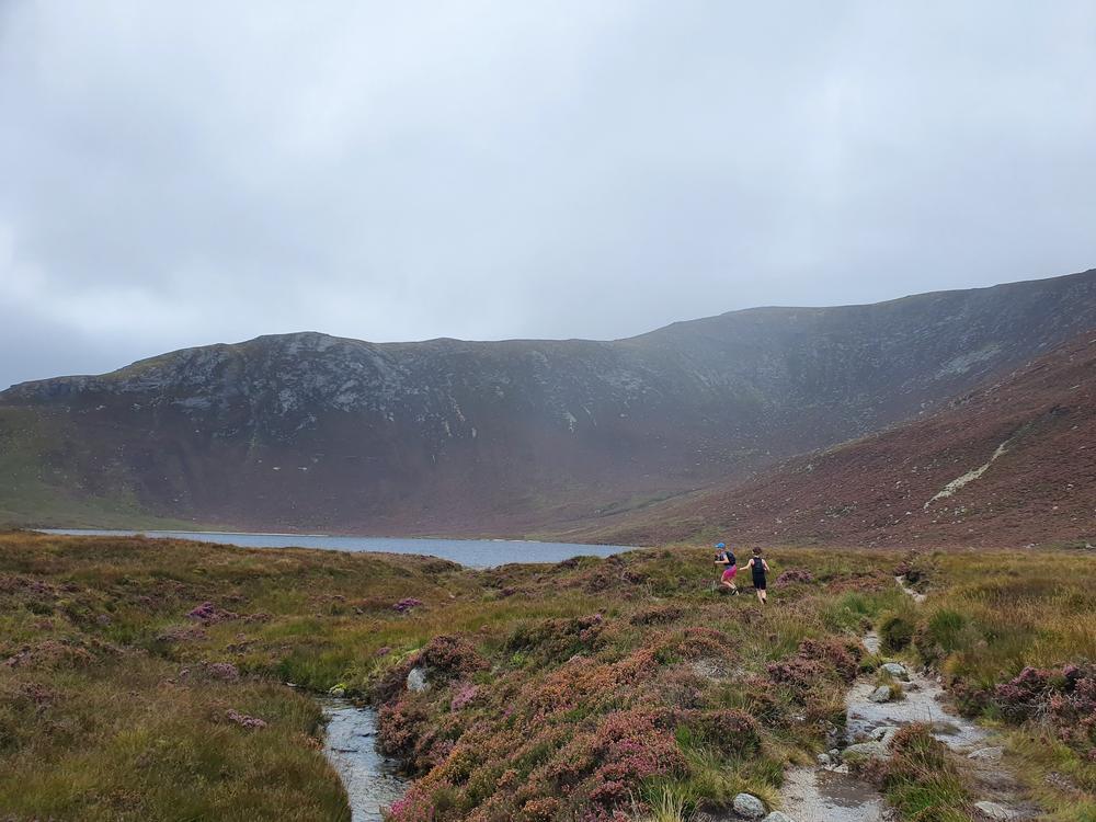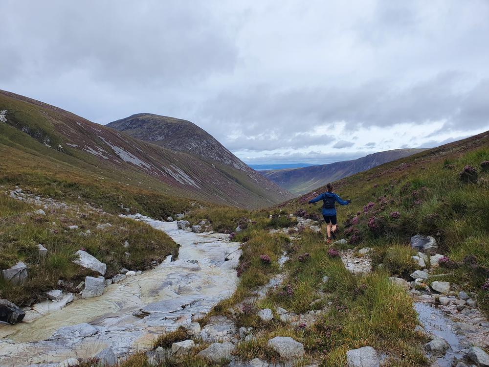 Meanwhile, Martha, Nicola and I had a gentle jog outing up Mullach Buidhe from the bottom of Glen Catacol, over the ridge and back down the glen It was cloudy and windy on the top, but the route included a lovely rocky descent (no running possible) and an incredible dip in the river at the base of a waterfall. What a spot.