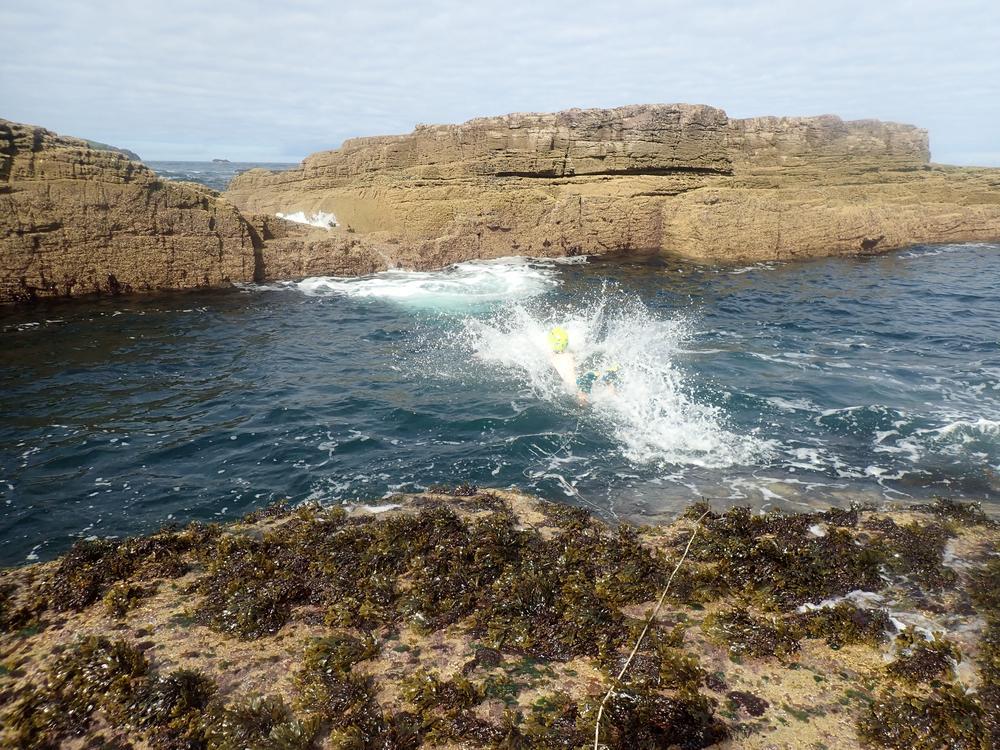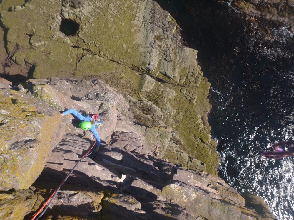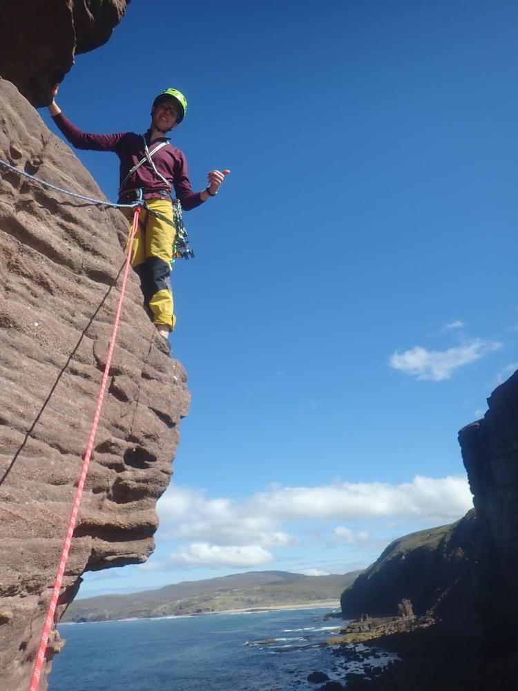 Doug and Rhi combined climbing with swimbling and had a great adventure on the sea stac Am Buachaille.