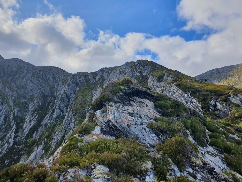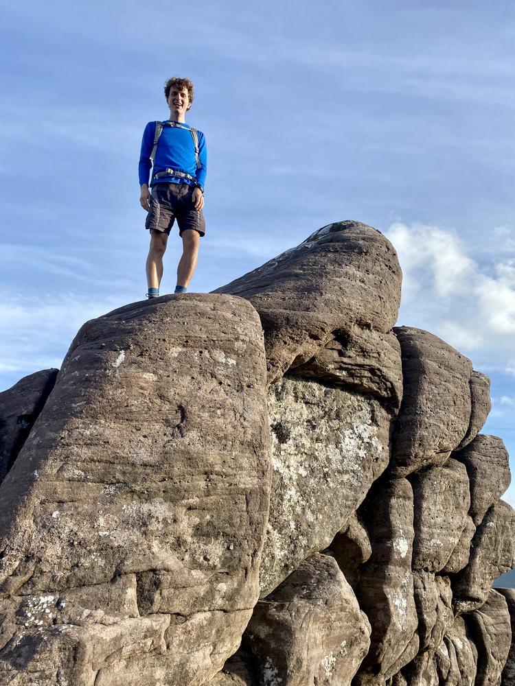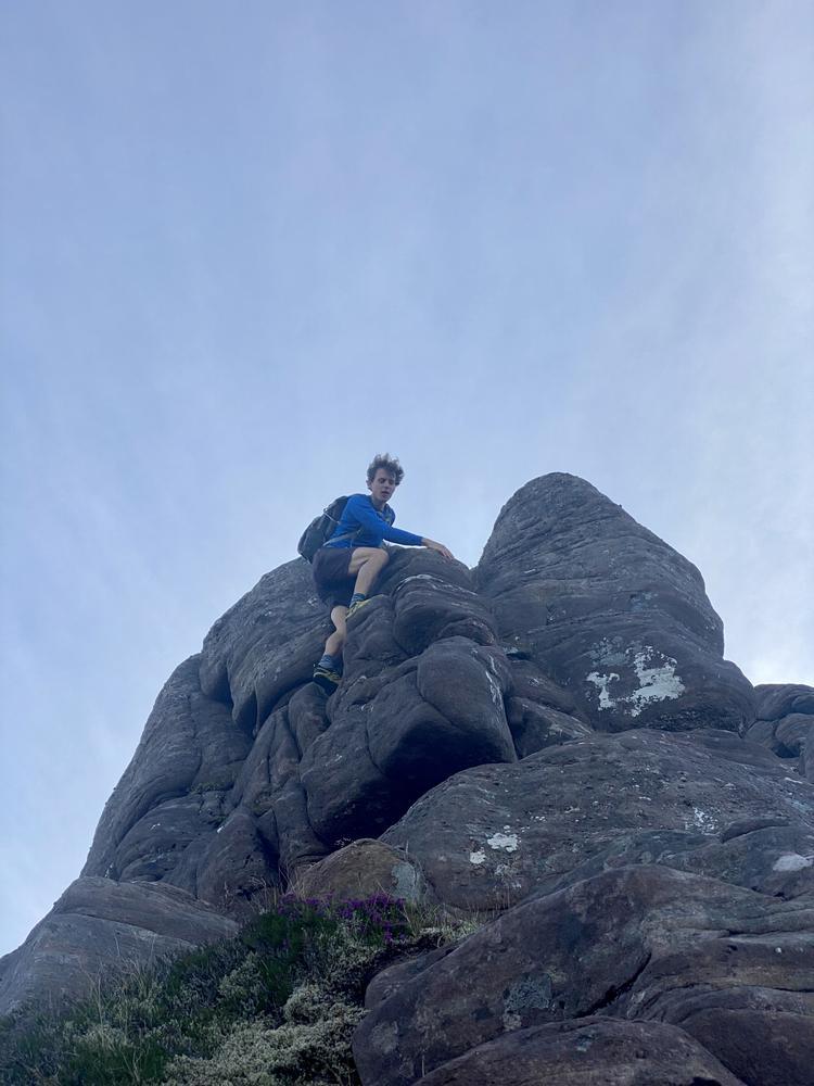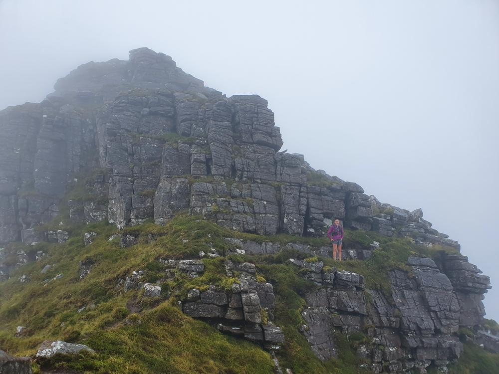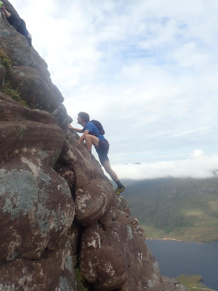 The weather got even better on Saturday. Neil and Claire originally had climbing plans – but when they realised that those would be incompatible with the opening hours of the Lochinver pie shop, they instead joined Kei on a scrambly adventure up Quinag. Despite Claire’s amazing buttresses, this wasn’t quite enough for Kai – so he also went up Conival and Ben More Assynt, whilst Claire and Neil stocked up on pies and explored the Bone Caves.