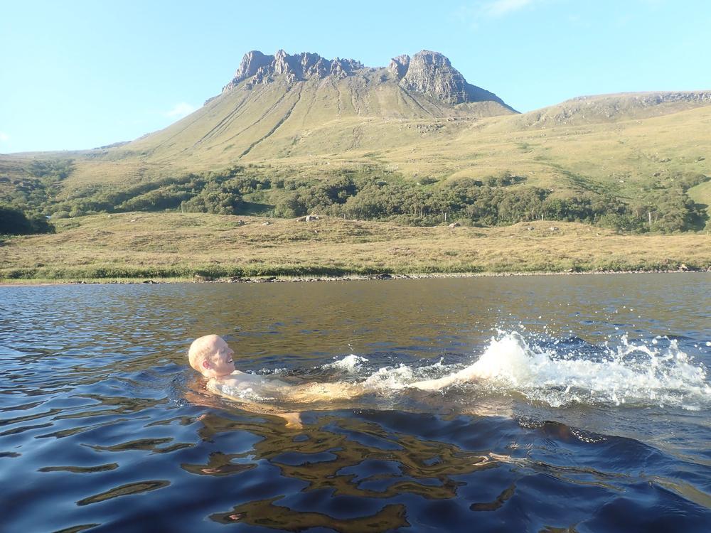 The weather on Sunday was a bit more traditionally Scottish – and Rhiannon, Kai, Neil, Claire and I set out for a run to and over Suilven. A lovely hill, and the remoteness in particular of the area south-east of Suilven was really quite special. More pies were acquired at Lochinver, and Claire and Neil then headed back to Edinburgh.