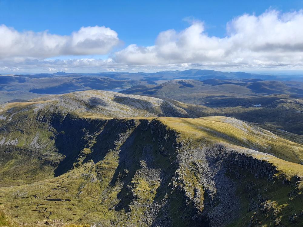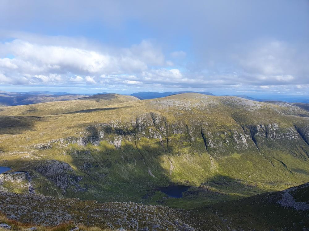 What a weekend with the EMC in the far north-west! On Friday, Claire, Neil, Rhiannon, Doug and I had a long but stunning day on Seana Bhraigh, Eididh nan Clach Geala, Meall nan Ceapraichean, Beinn Dearg, Cona’ Mheall and Am Faochagach. Great views in all directions, stunning wilderness – I think the only thing which slightly dampened the spirit was the long and boggy descent off Am Faochagach.