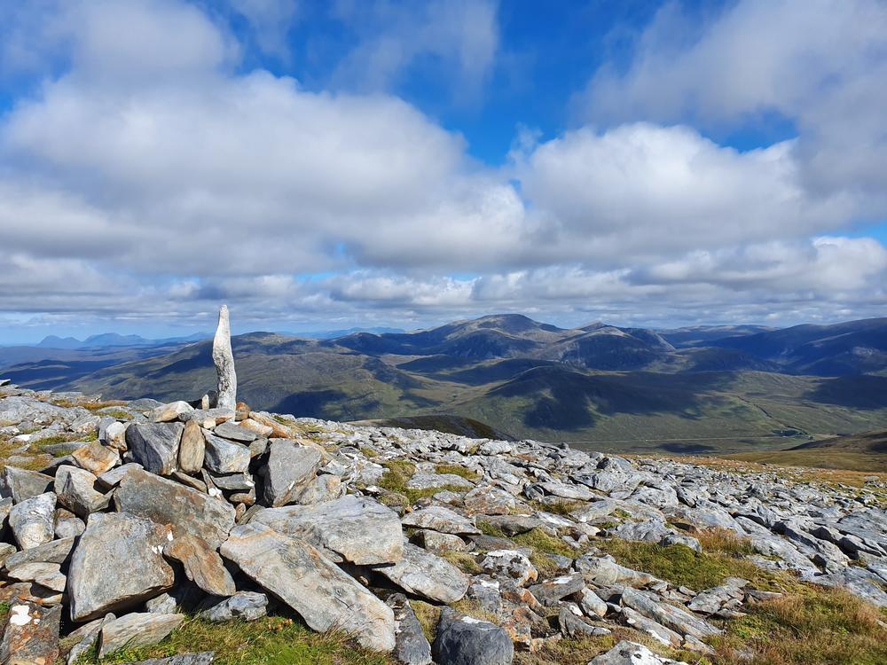 Kate and Allan had their eye on Carn Ban. They managed to drive until the Schoolhouse Bothy at Strath Mulzie, and after 2.5 hours of walking bumped into a group of stalkers. A lot of negotiations were required, and finally everyone was able to agree on a route for Kate and Allan which wouldn’t interfere with stalking – and they made it all the way to Carn Ban’s summit – and back to their car. What an achievement!