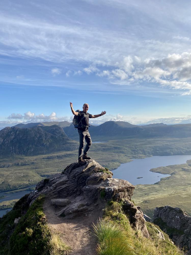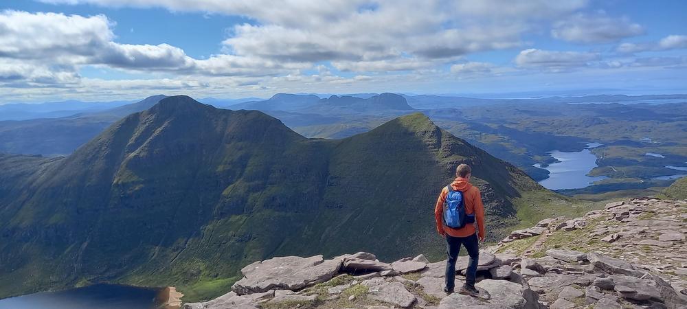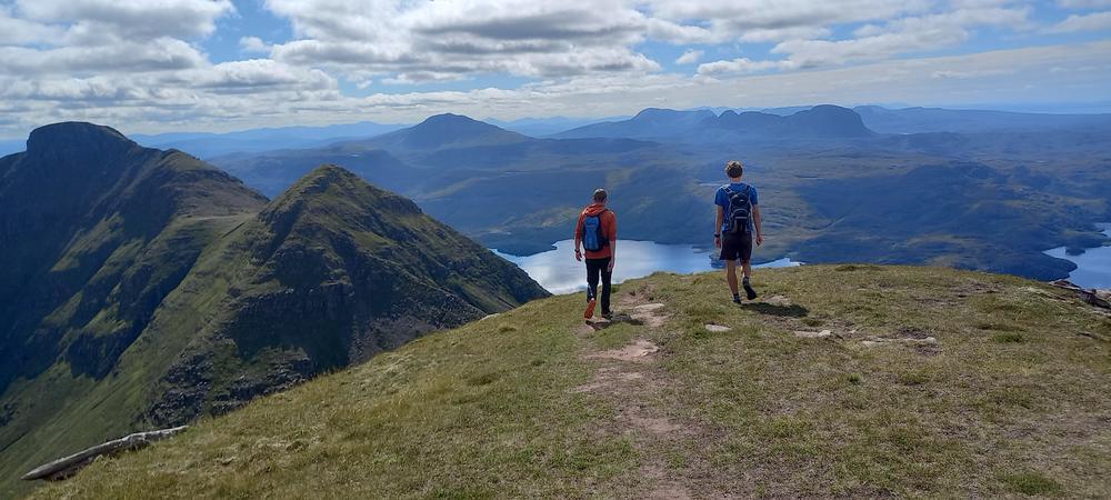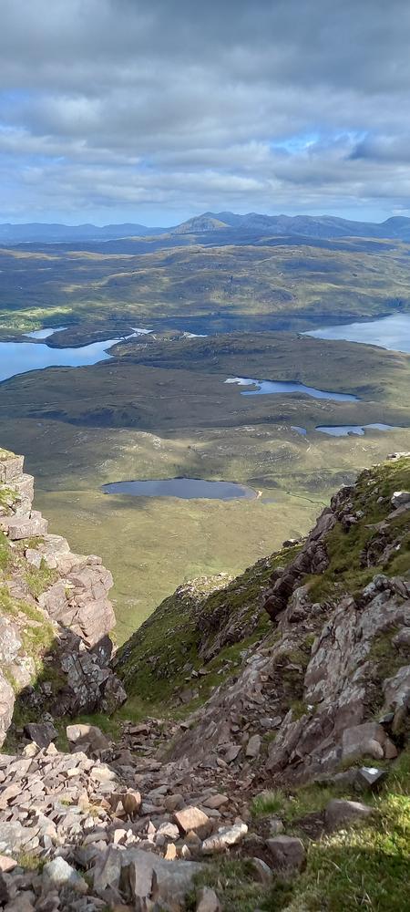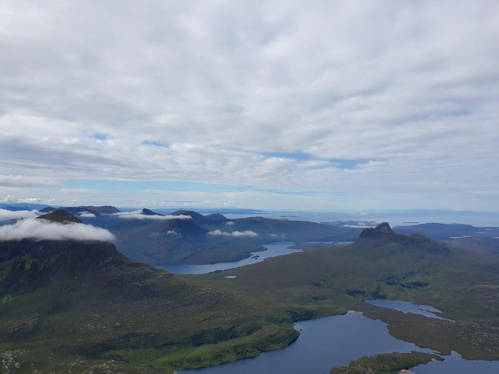 Steve and Kai had quite an adventurous drive up – a burning car nearly blocked the A9 at Perth, and a crashed car then properly blocked it just after Dalwhinnie. After a detour via Laggan they did still manage to get up Stac Pollaidh and enjoyed great views from the summit.