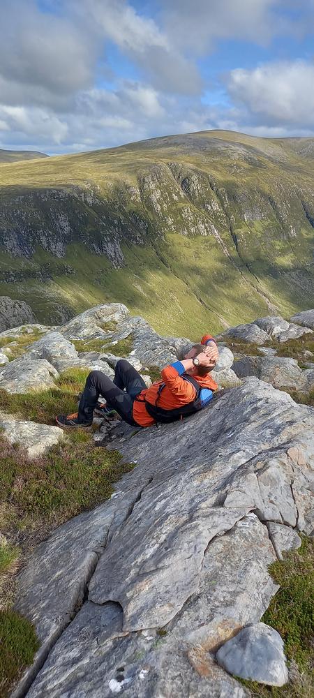 Kai, Rhi and Doug climbed Cul Beag via the Lurgainn Edge – and absolutely loved it. In the afternoon, Rhi and Doug saw a lot of deer on “Stag” Pollaidh as well as an adder and a slow worm, went for a swimble in Loch Lurgainn, and then stayed for an extra night in the hut. They still had enough energy to do both Wyvises on Tuesday on their way back to Edinburgh!