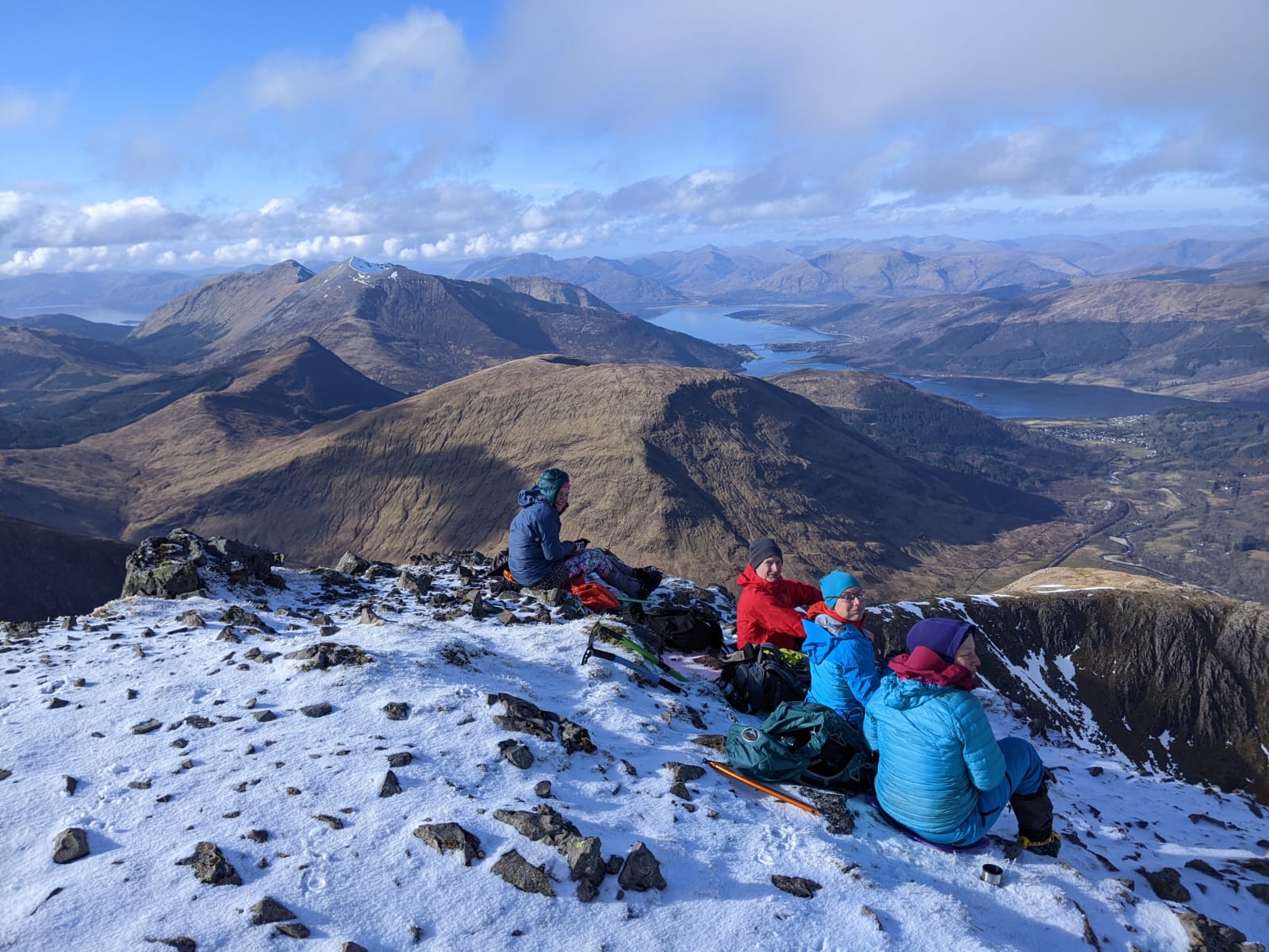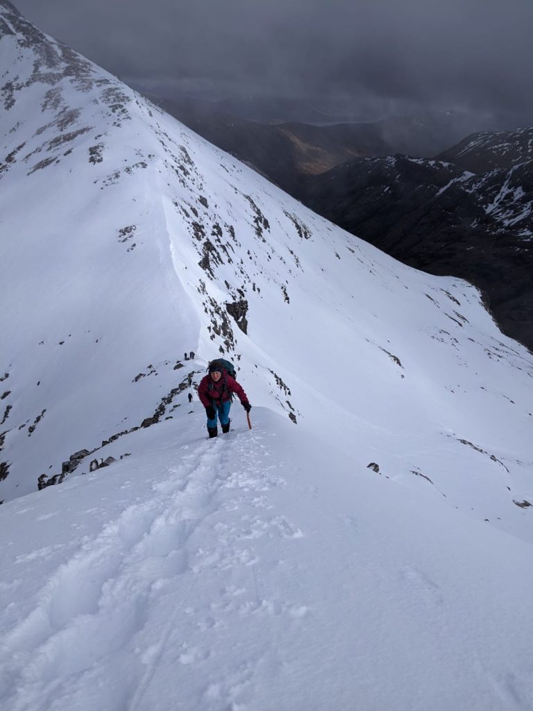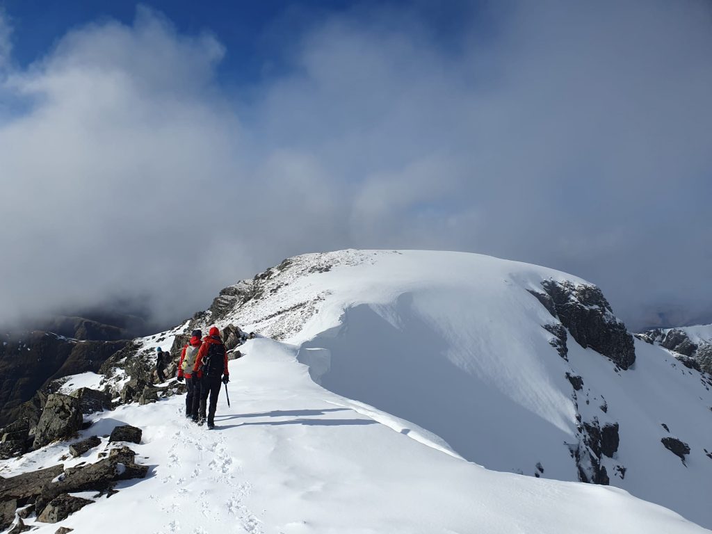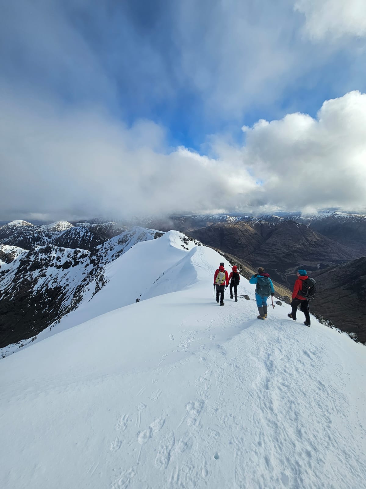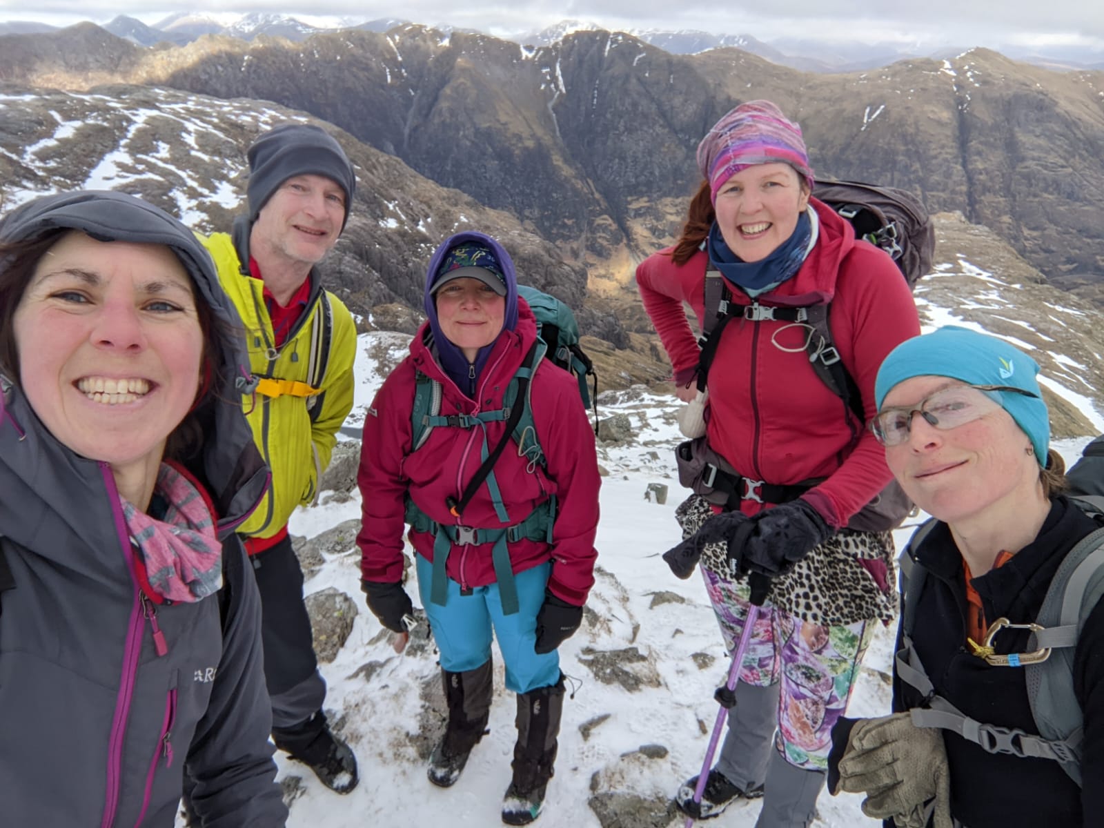 Saturday was forecast to be pretty good, so most were up relatively early, and managed to snag some sunshine. Waking up to a slightly changed weather forecast, Mike, Fiona, Anna B, Lisa P and Martha drove north to promised (and delivered!) sunshine in Glencoe. They ascended Bideam nam Bian via the zigzags, and enjoyed great views from Stob Coire nam Beith before heading over to Stob Coire Sgreamhach. They had originally planned to descend via the Lost Valley, but a >20 folk strong group from a university mountaineering club had created a bottleneck situation making very slow progress down the steep and corniced slopes. The 5 EMCers decided to descend via the SE ridge to the Lairig Eilde, and Mike managed to hitch a ride back to the car with a group of walkers from Leeds.