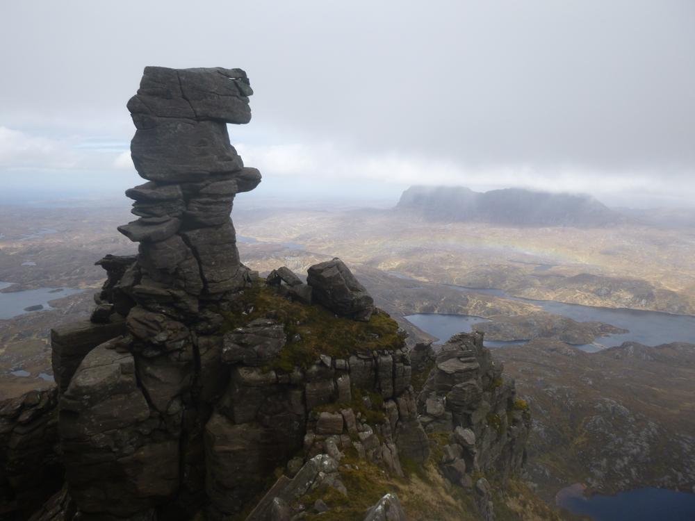 Rob E was also unable to stay a further night and left early with the intention of taking in Canisp on the way. David J and I opted for a coastal walk to the Old Man of Stoer, taking in impressive views of not only the coast but inland to the hills. Shireen and Fiona C headed North to take the normal people’s route to Cranstackie and Beinn Spionnaidh, hoping for sun but reporting back on a need for navigation on the summit. Duncan I and Doug took in some scrambling on Suilven and were well on their way back before the rain began. In all it was a good day, with the rain arriving later than forecast.