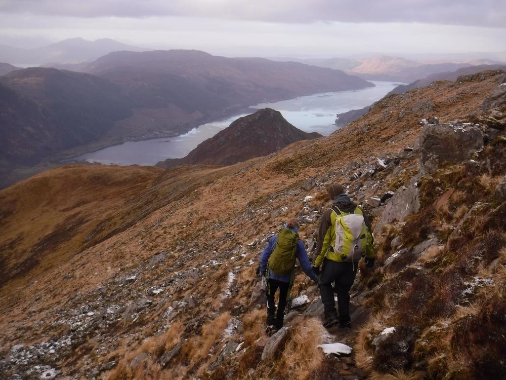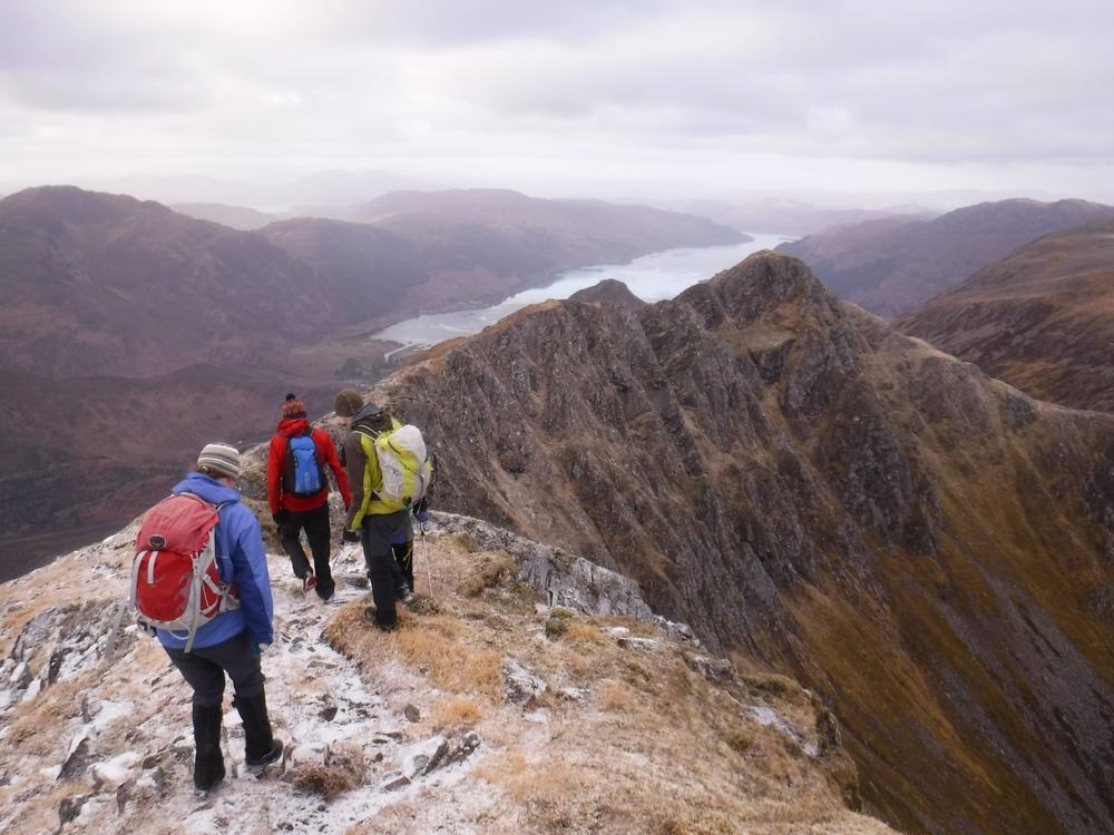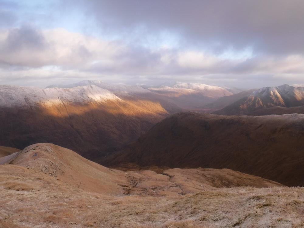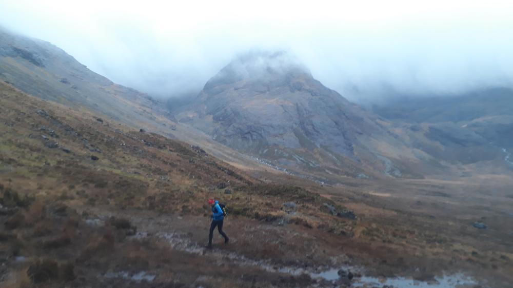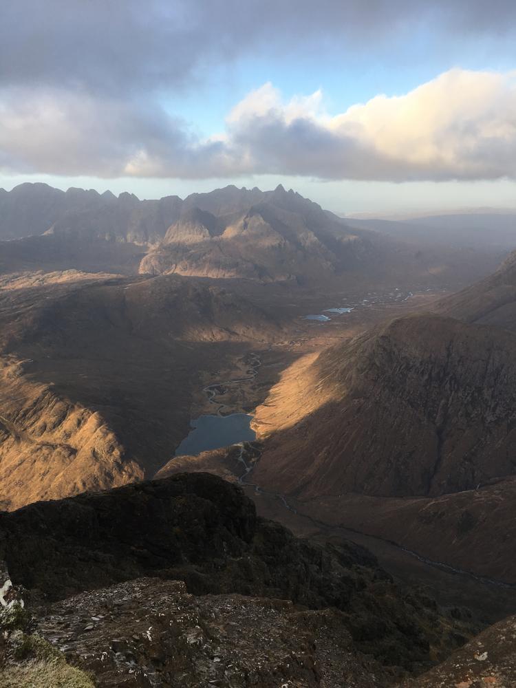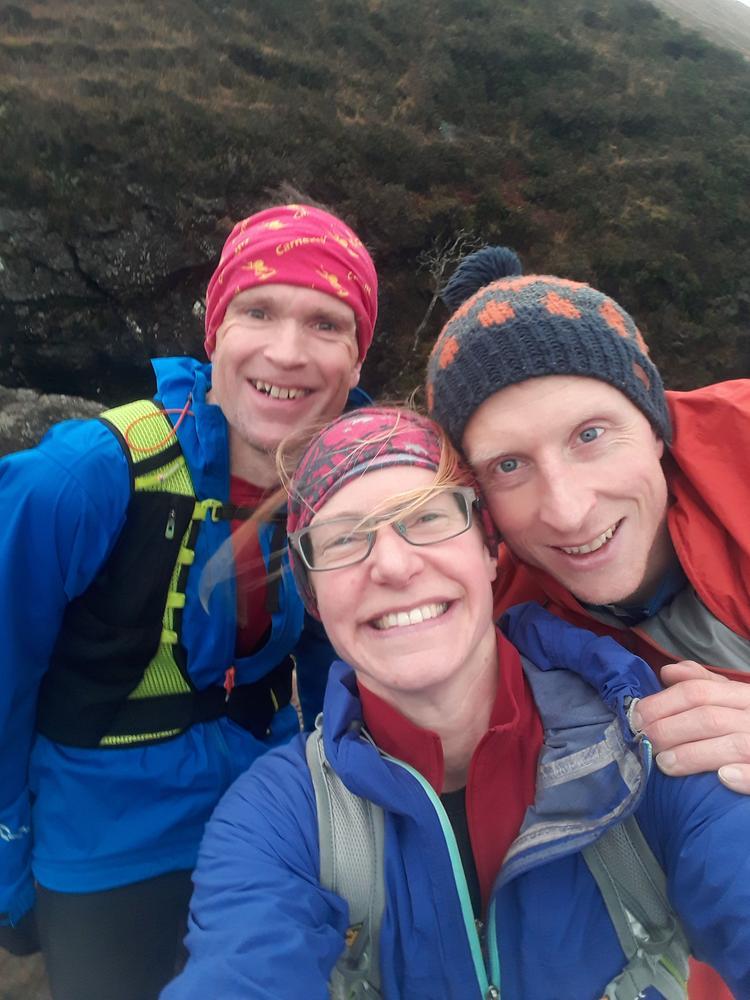 After two minging days of weather the first day of 2019 came up trumps, little wind and clear tops. I jumped at the chance to get up Blaven in clear conditions and did a wee run up it, taking in fantastic views. I met Chris R,Chris W and Clare on my way down as they made their ascent. Clare’s influence in cold water swimming is catching with Chris R going in for a dip in Loch Slapin after their walk, brave lad. Fiona C, Cathy and Gillian also stayed on Skye and made Garbh Bheinn their first hill of the year. Neil and Claire did a run over the Kintail brothers and sisters and met up with Mike, Fiona R and Fiona M who were doing the 5 sisters. The hills had a slight whiteness on them today but full winter seems a long way off yet.