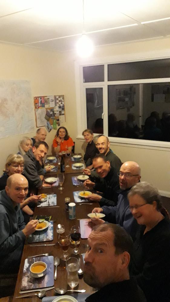 15 of us descended on the Sligachan bunkhouse on Skye for the last meet of the year and we arrived at various times throughout the day. A few of us had stayed at Invergarry the night before and did various hills on the way through to Skye with Kenny and Fiona C going up Carn Ghlusaid at Cluanie and myself and Anne going up Sgurr na Sgine while Gillian was Graham bagging near Fort Augustus. After receiving an urgent text from Claire I made an emergency stop at the coop in the Kyle to buy the custard which Claire had forgotten, close call but disaster averted and custard was procured.