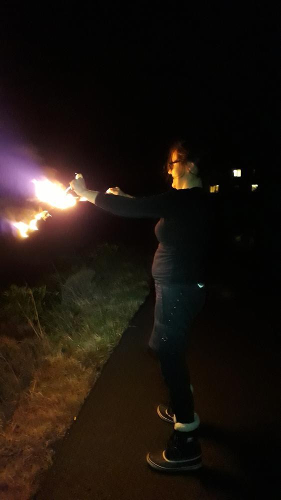 If we had thought the weather on Sunday was poor, on Hogmanay it was even worse. Horizontal rain, 50mph winds, more coffee please! Eventually cabin fever began to kick in and folk started to venture out, first to break was Neil, who donned his running stuff and took off up Glen Sligachan into the wind and rain. Anne and I took Gillian’s shopping order and went off to the Portree coop and then walked up to the Old Man of Storr where we saw Kenny but not much else. Others went to Talisker Bay, some stayed near the Slig, while Claire and Chris R went over to Camusunary and hitched a lift back to the car in a post van. That evening we had another great feed, the custard all being consumed, followed by a quiz. As the New Year came in we were walking down the track, mulled wine in hand, to see Kennys excellent firework display, after which the sparklers came out. The star of the show though was Clare who performed a fantastic fire dance, the hidden talents of the EMC.