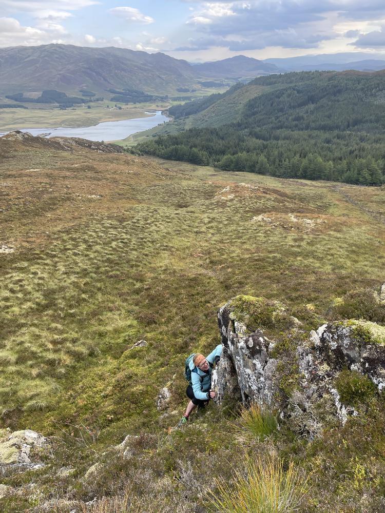 Sunday was a bit greyer and windier. Most of us enjoyed a very sociable circuit of Creag Ruadh, where we nibbled on plenty of blaeberries and explored the impressive Dun da Lamh hill fort (https://forestryandland.gov.scot/learn/heritage/visit-heritage-sites/dun-da-lamh-fort). We descended down a surprisingly enjoyable black mountain bike trail.