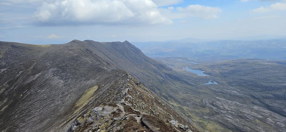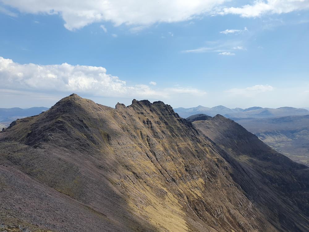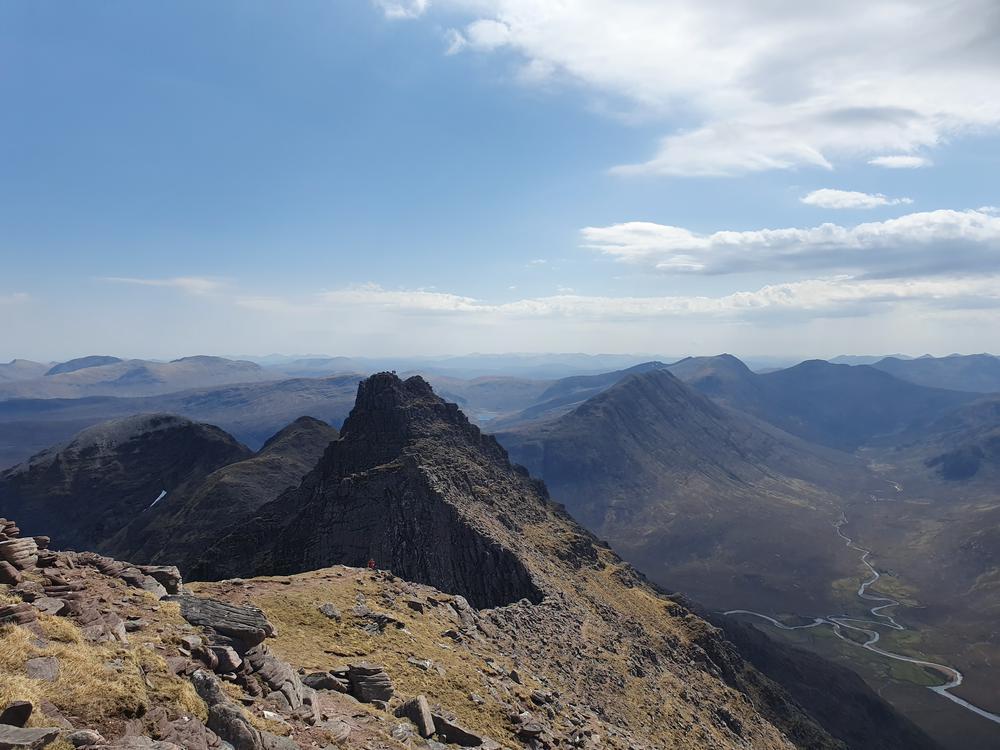 On Friday morning, a beautiful summer’s day, I was dropped off at Ardessie from where I first headed up Sail Mhor and then over to An Teallach. On the summit of Sgurr Fiona I met up with Doug & Rhi who had approached via the classic ridge scramble where they had spotted an eagle chasing a crow. Rhi & I had a quick out and back to Glass Mheall Liath whilst Doug had a great snooze on the summit of Bidein a’ Ghlas Thuill.