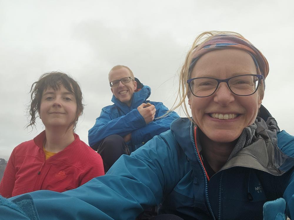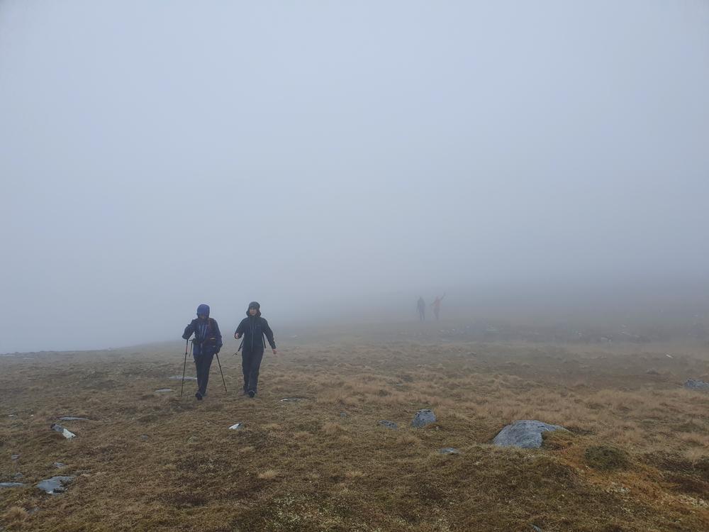 Sophie, Nicola, Doug, Rhi and I had a soggy and viewless walk up Beinn Enaigler, where Doug learned the word “Sitzpinkler”. Claire ran up Beinn Enaigler, failed to find us but did meet Fiona C and Helen on the summit of Meall Doire Faid.
