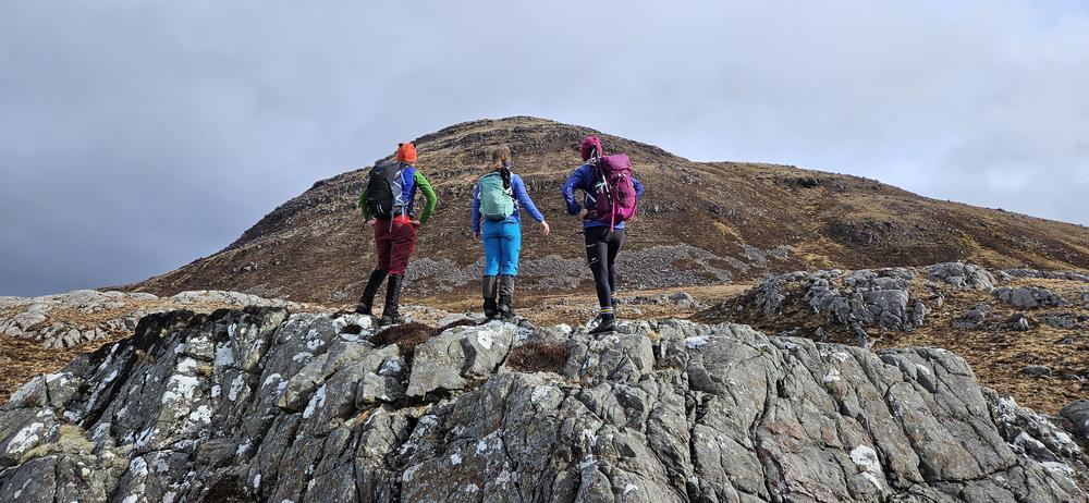The dry weather continued on Sunday, although the clouds were now quite low down. Fiona C, Emma and Kate went up Breabag from near the bone caves while Allan rambled around the glens at the bone caves.