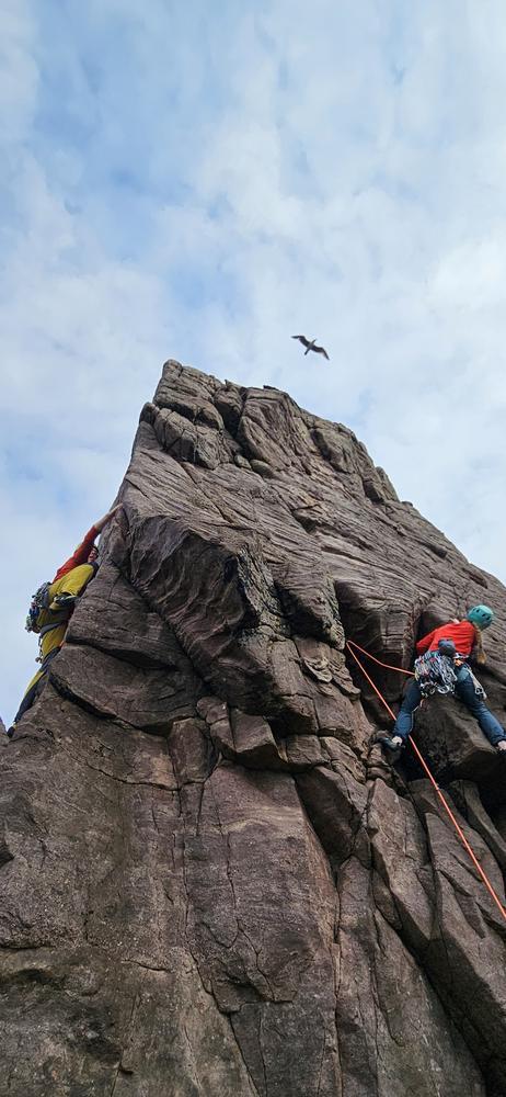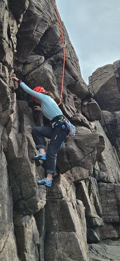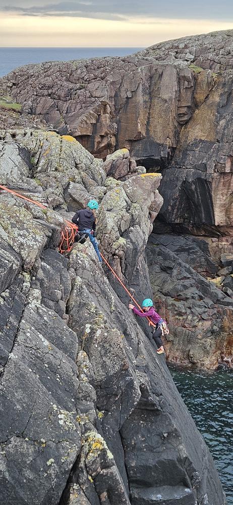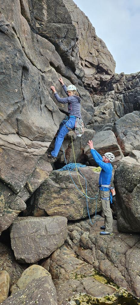 Fiona M and Alison went rock climbing just north of Lochinver, short walk ins and short routes.