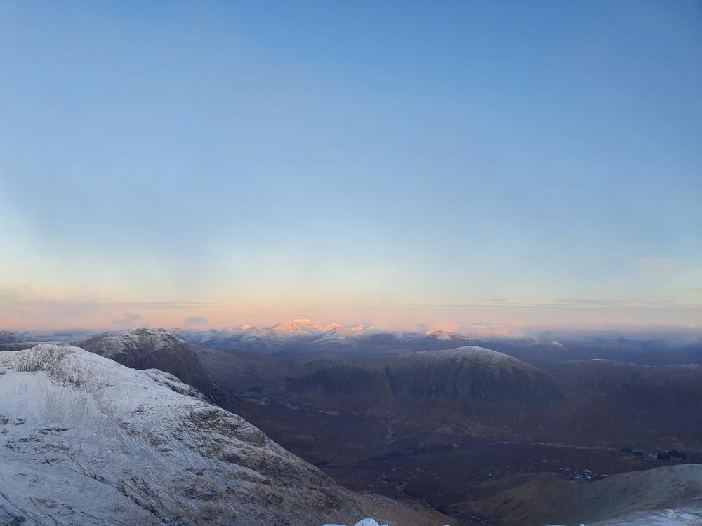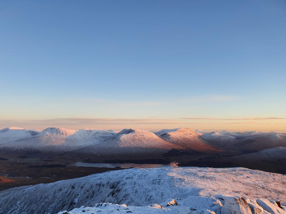 Sunday’s weather was just amazing. Doug, Claire and I did a circular route of the Black Mount from the Ski Centre, with the first Munro (Meall a’ Bhuiridh) for sunrise. The cloud came in a bit for Creise but then lifted again, and we reached our 4th Munro (Stob a’Choire Odhair) for sunset. The return along the West Highland Way felt quite long and was freezing thanks to a temperature inversion affecting the glen level – and the walk was captioned “another Chopkins Sufferfest” by folk who were lucky to have made alternative plans. They don’t know what they’ve missed out on!