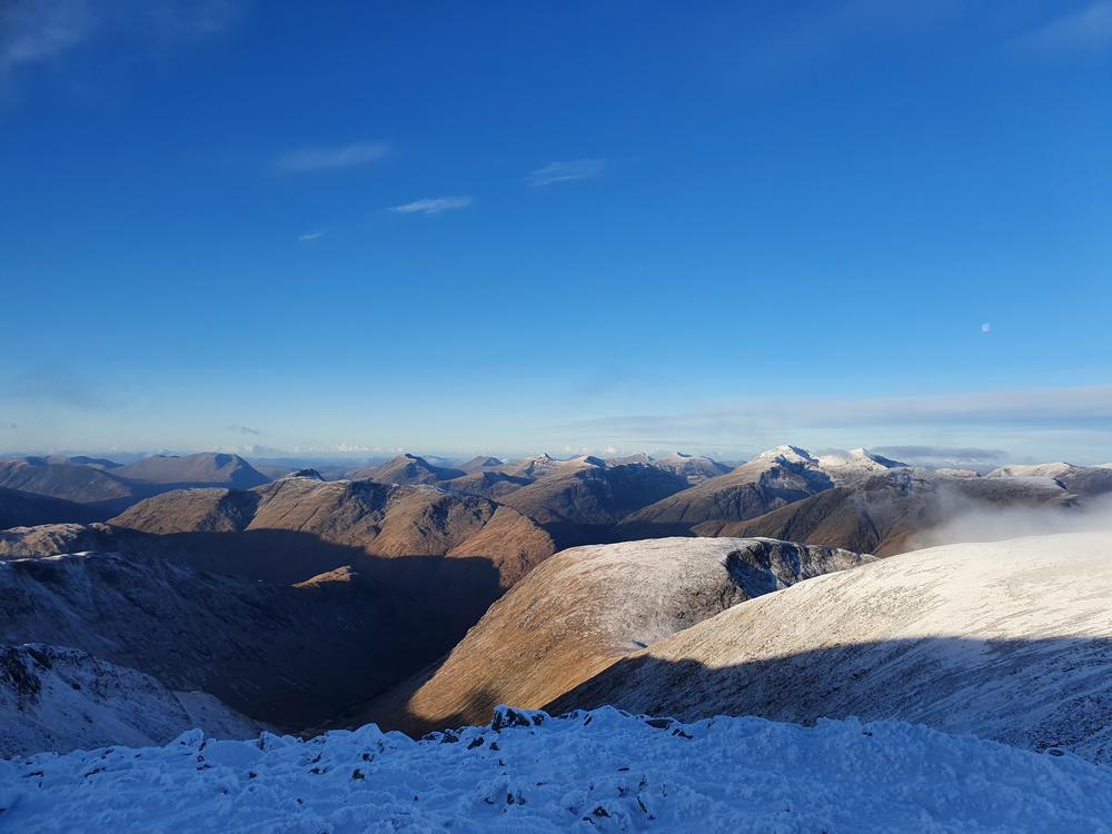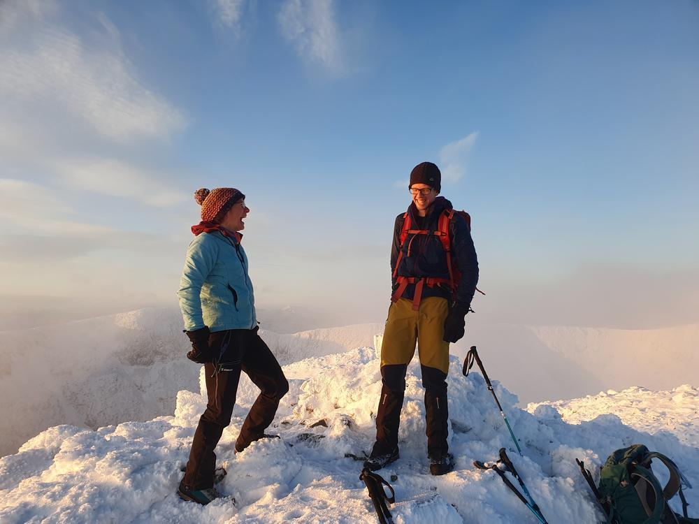 The Glencoe meet was a fabulous start to the winter season 2022/23. Quite a few meet attendees started their weekend early. Tim D took the bus up on Wednesday and spent 2 days and 2 nights backpacking around Sgòr na h-Ulaidh and Beinn Fhionnlaidh in sub-zero temperatures. Claire and Doug were glad about their microspikes on Beinn Dòrain & Beinn an Dòthaidh. Chris Re and Kai enjoyed a wintry day on Meall Ghaordaidh, and Mike and Fiona ticked one of the new Grahams/Dawsons. Dan and myself only left Edinburgh midday, but still managed to squeeze in a Graham (Meall Buidhe) on the way up.